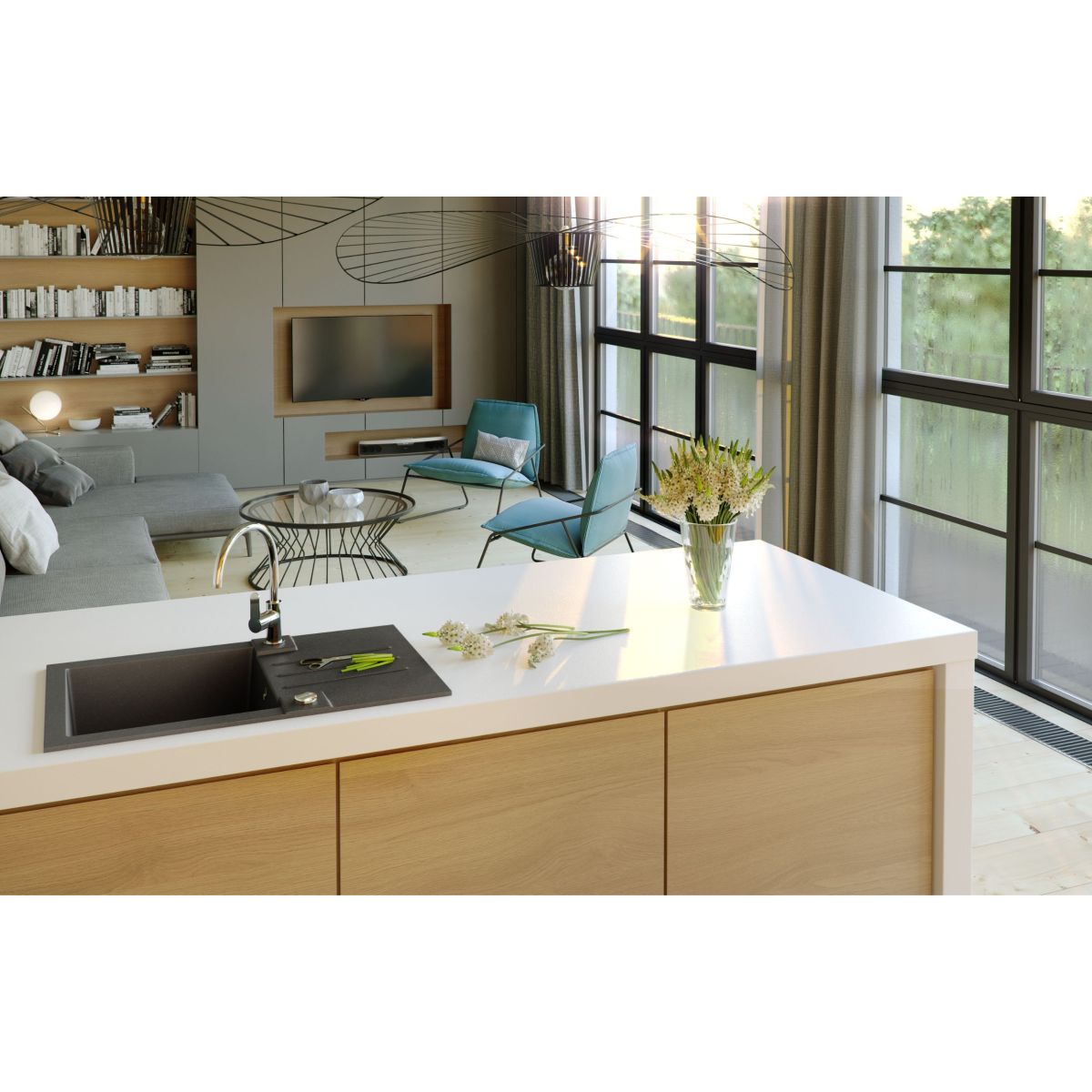- jednokomorový dřez – pohodlný pro každodenní použití