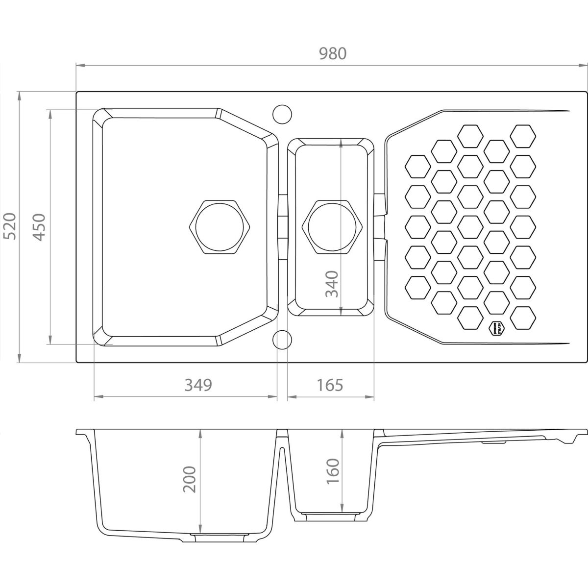 - oboustranný dřez s 1,5 mísy a odkapávačem na vodu