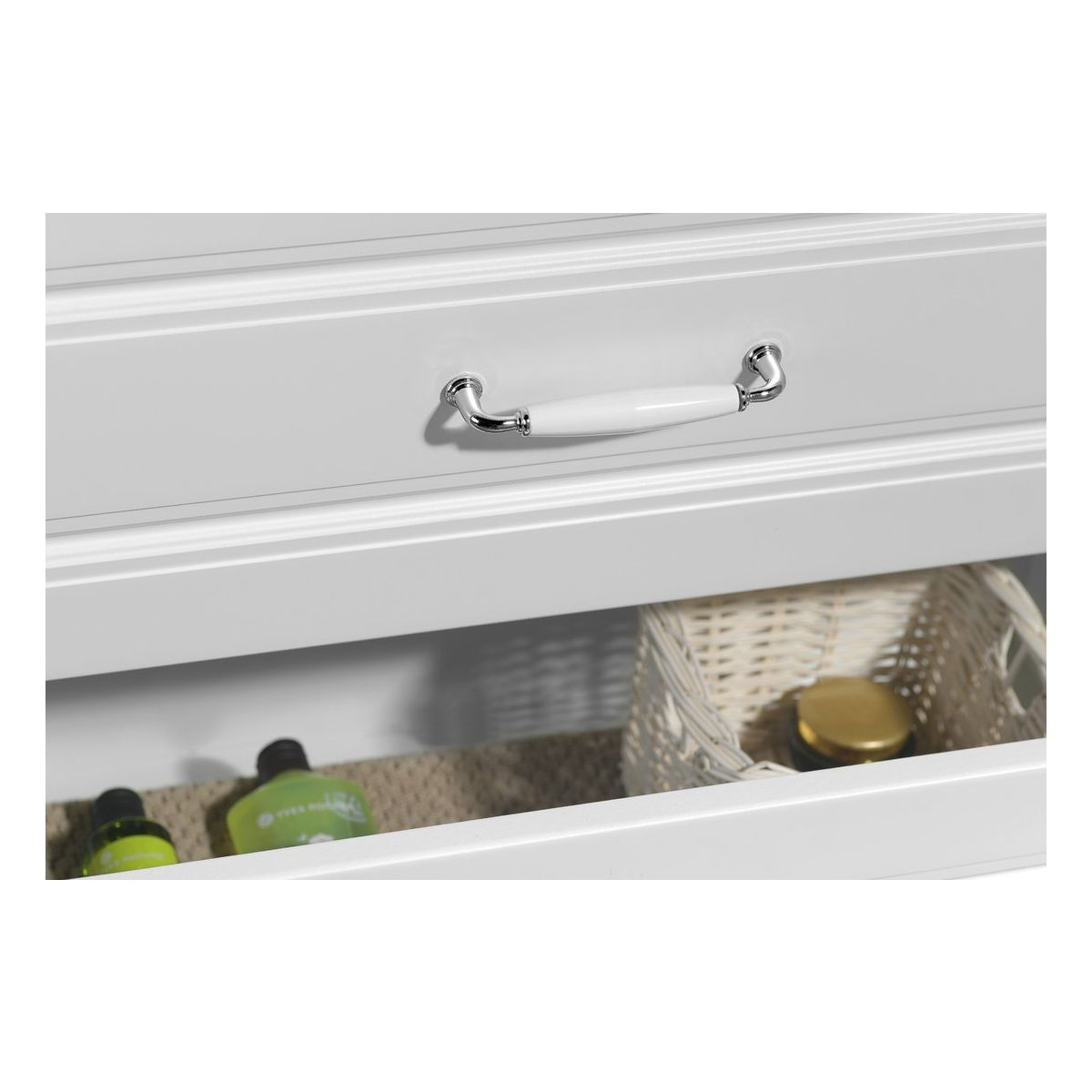 - barevné provedení úchytek: bílá/chrom