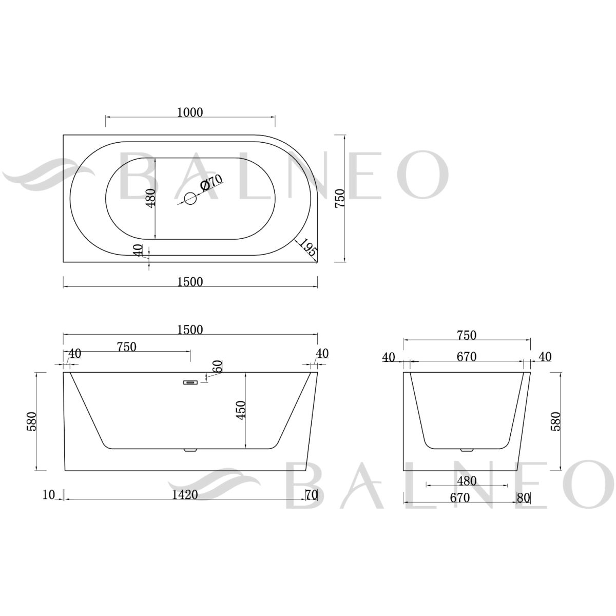Balneo Avola volně stojící vana 150x75 cm oválná bílá J0101010402-3