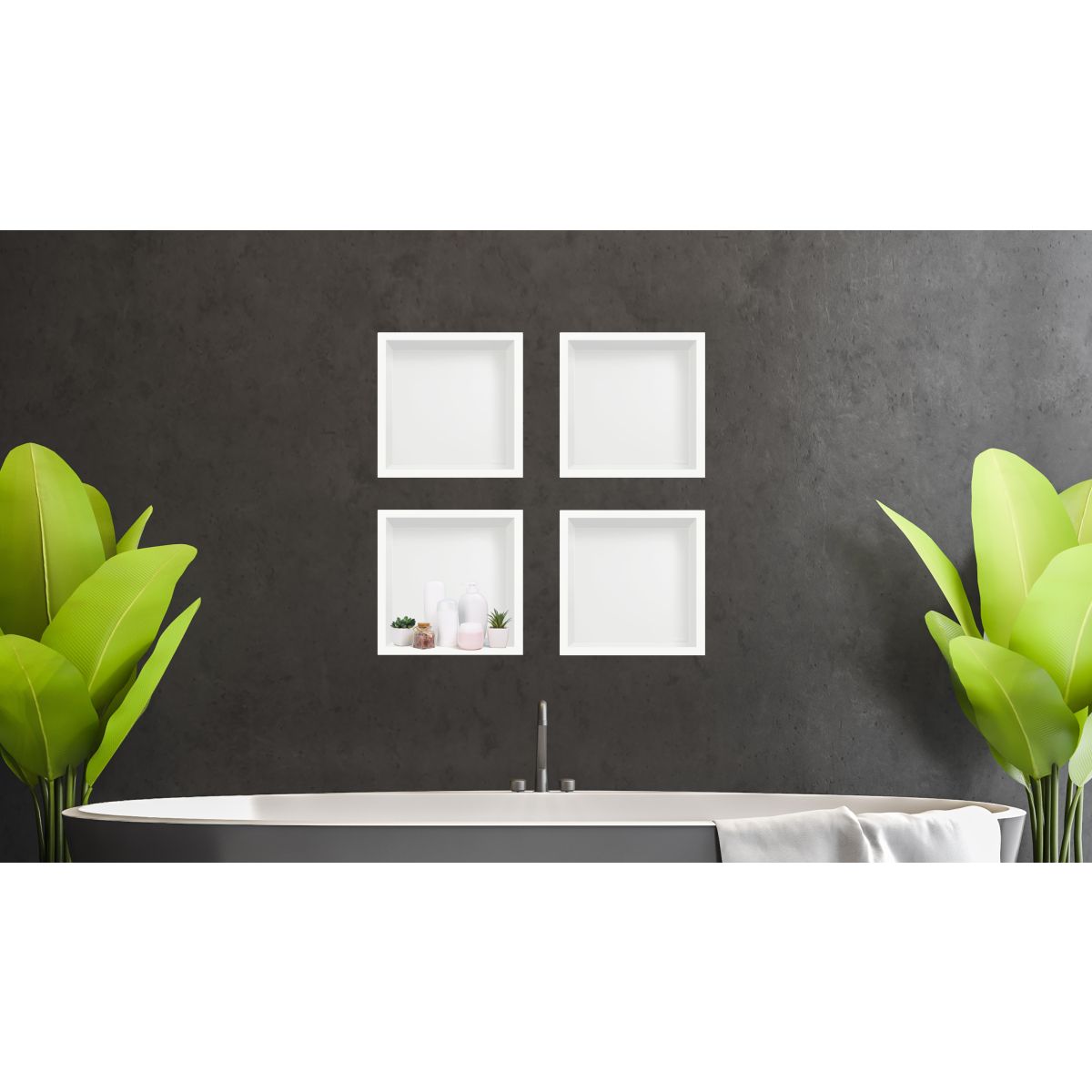 WALL-BOX ONE je také alternativou k zapuštěným poličkám ze sádrokartonu. sádrokarton není vhodný materiál pro výrobu zapuštěných poliček, zejména tam, kde je velká vlhkost (např. sprchový kout).police ze sádrokartonu nejsou vodotěsné, což může způsobit zatékání vody dovnitř stěny přes vymývané spáry. Výroba těchto typů polic je velmi nákladná, problematická a pracná.