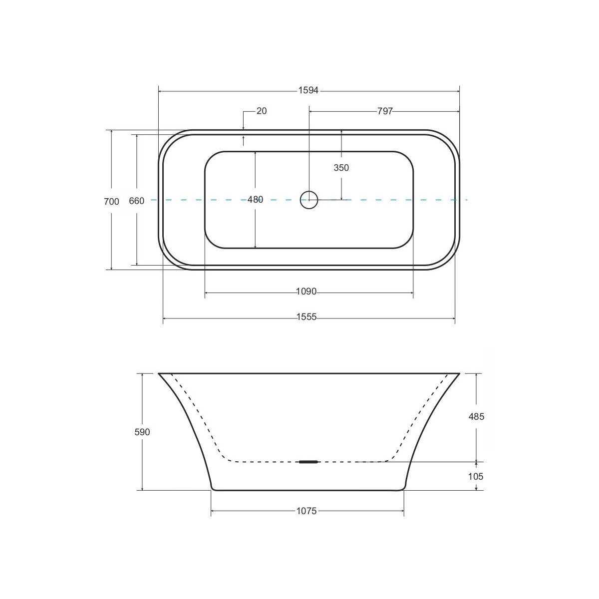Besco Assos S-Line volně stojící vana 160x70 cm obdélníková bílá #WMMB-160ASC