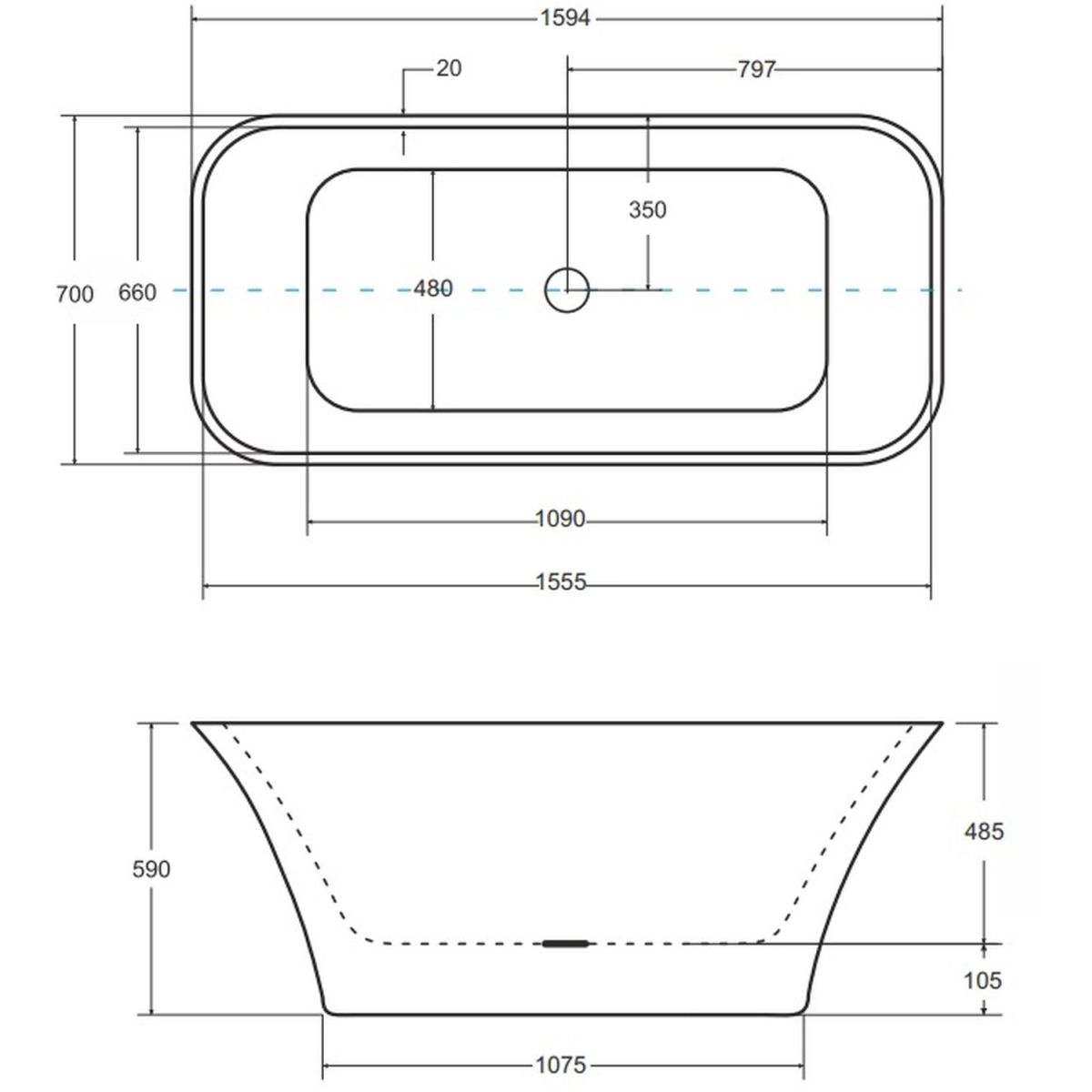 Besco Assos S-Line volně stojící vana 160x70 cm obdélníková dvoubarevná #WMD-160-ALZ