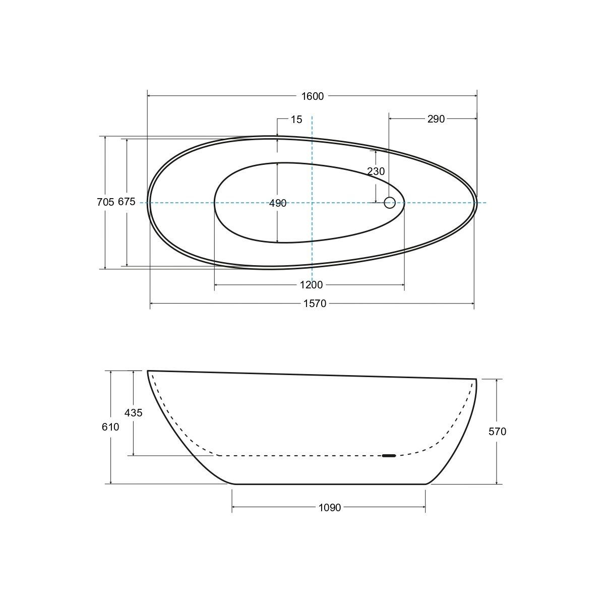 Besco Goya volně stojící vana 160x70.5 cm oválná dvoubarevná #WMMC-160GKW