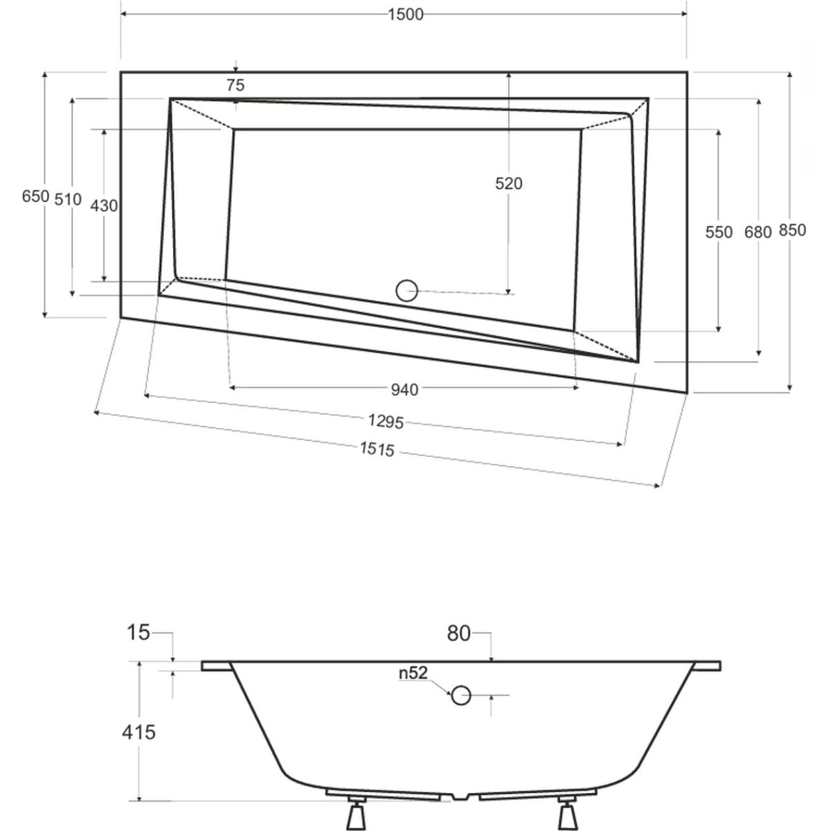 Besco Intima rohová vana 150x85 cm Pravostranná bílá #WAIT-150-SP