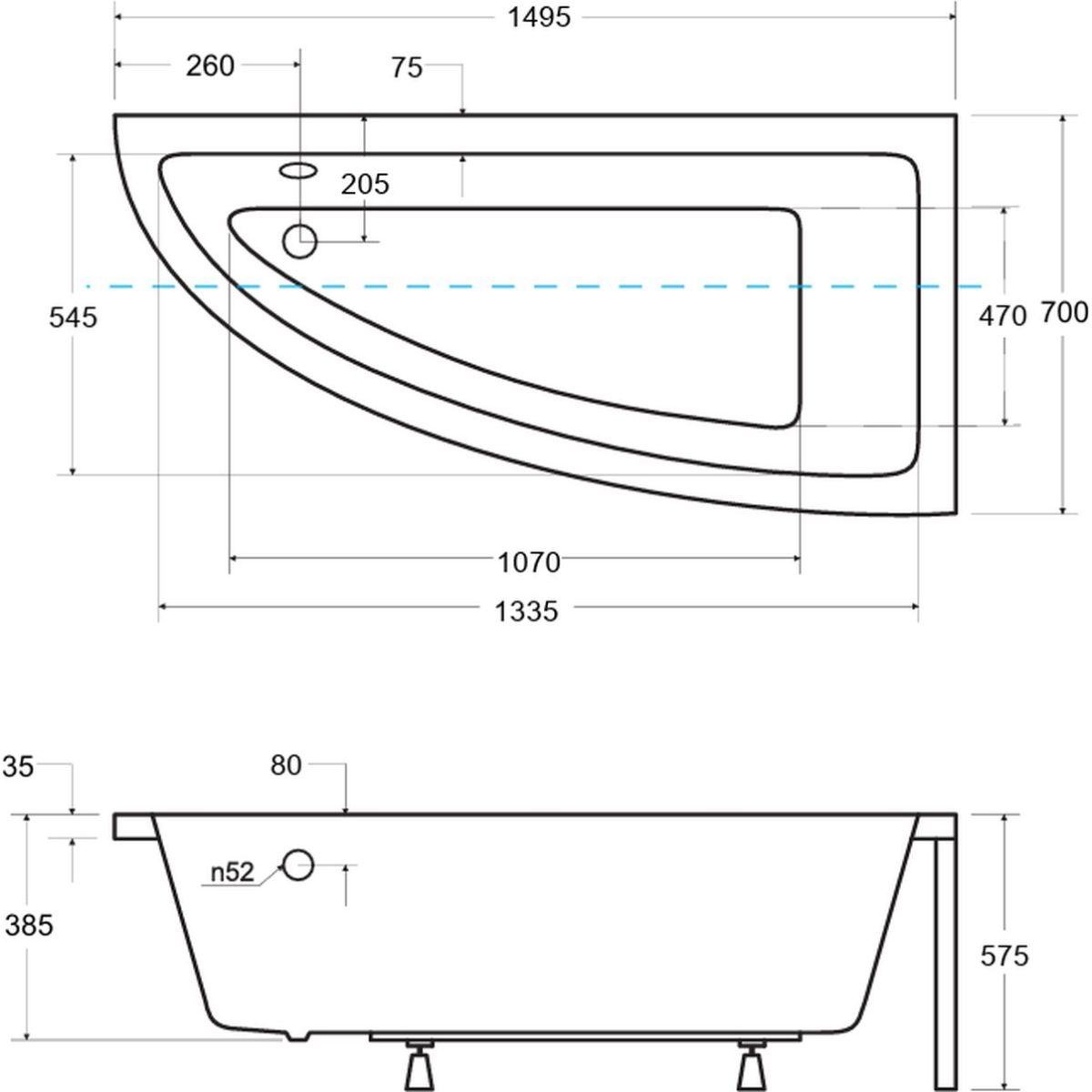 - delší strana (A): 149,5 cm