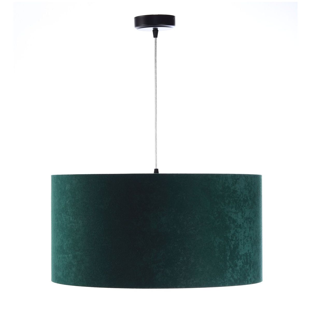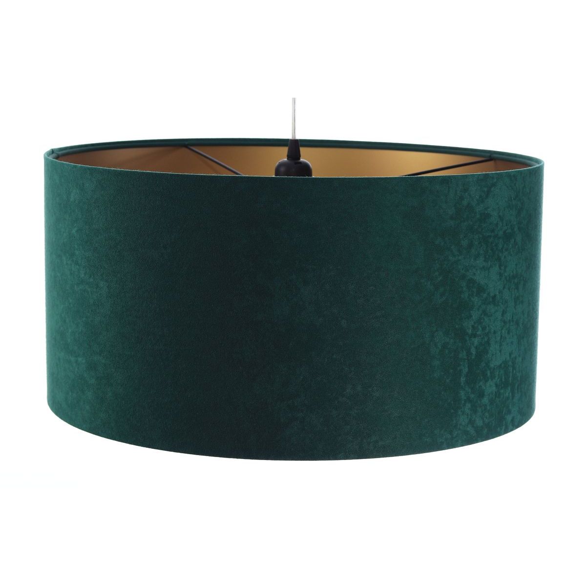 Stínidlo vyrobené z velurové tkaniny (mikrovlákno) v tmavě zelené barvě na plastovém podkladu z PVC se zlatým matným středem. Parametry objímky: 1 x E27 max. 60 W. Parametry stropní krytky: plastová, rozměry 10 cm x 2 cm. Délka kabelu: max. 80 cm, možnost nastavení. Barva kabelu: transparentní. Lze použít LED žárovky.