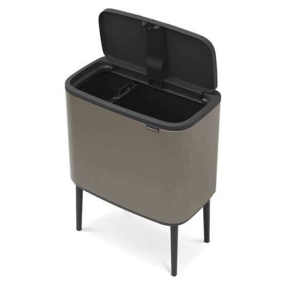 Hledáte krásné řešení pro třídění odpadu? Tento 34litrový koš Brabantia Bo Touch Bin vypadá jako kus nábytku a má vše, co potřebujete pro snadné třídění odpadu. Má dva vyjímatelné vnitřní koše na dva druhy odpadu, perfektně přiléhá ke zdi a je velmi stabilní díky nastavitelným protiskluzovým nožičkám. Měkké otevírání zajišťuje snadné a lehké ovládání pouhým dotykem ruky.