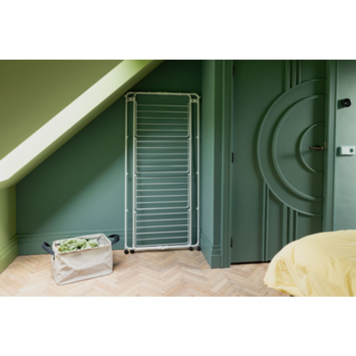 Šetřete elektřinu přirozeným sušením prádla a ušetřete místo zavěšením na sušák HangOn Tower od společnosti Brabantia! Díky 30 metrům flexibilní sušící plochy a přídavným háčkům a držákům na ramínka na oblečení zabírá tato chytrá sušička minimální prostor a ušetří vám spoustu místa. Sušák má čtyři sušící úrovně, z nichž každou lze v případě potřeby sklopit, takže je vhodný i pro sušení velmi dlouhých předmětů, například kalhot. Díky čtyřem kolečkům jej lze otáčet a přemisťovat. Jakmile je prádlo suché, lze jej složit na plocho pro kompaktní skladování. Přepravní zámky udržují rám na místě a slouží také jako háčky. Zakoupením tohoto sušáku zároveň podpoříte organizaci WeForest v jejím poslání vysazovat více stromů. Chtěli byste ji používat?