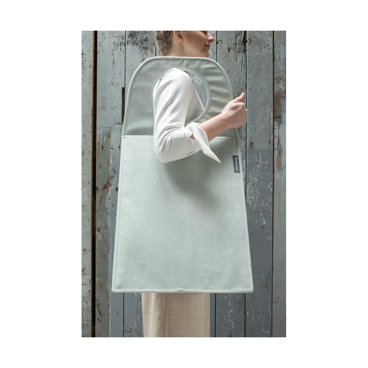 Velký obdélníkový vak na prádlo Brabantia o objemu 55 litrů. Pevný textilní pytel má rychloupínací uzávěr, takže můžete prádlo hodit přímo dovnitř a nemít ho na očích.