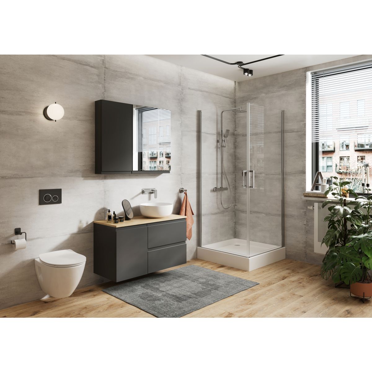 Dveře sprchového koutu jsou vyrobeny z 6 mm silného tvrzeného bezpečnostního skla, které zajišťuje stabilitu konstrukce a zaručuje bezpečnost při používání. Sklo je opatřeno ochrannou hydrofobní vrstvou CleanPro, která účinně zabraňuje usazování vodního kamene a nečistot, což usnadňuje udržování sprchového koutu v čistotě. Dveře vyrobené z jedné skleněné tabule jsou opatřeny funkčním závěsem, který umožňuje jak jejich široký úhel vyklopení směrem ven, tak jejich sklopení dovnitř, což šetří místo v koupelně po sprchování. Sloupový závěs má také funkci zvedání a spouštění dveří, čímž prodlužuje životnost těsnění. Oboustranné úchyty z vysoce kvalitního kovu kombinují odolnost a funkčnost. Nastavitelný stěnový profil poskytuje větší flexibilitu při instalaci, protože je vhodný pro použití na nerovných stěnách. Magnetické těsnění a prahová lišta zabraňují úniku vody, což zvyšuje uživatelské pohodlí. Výrobek je určen k instalaci do výklenku i s boční stěnou skříně nebo dveří MODUO. Instalace se sprchovou vaničkou nebo přímo na podlahu. Křídlové dveře se sloupovým závěsem, univerzální pravé nebo levé. Profily v lesklém chromu. Průhledné sklo. Výška 195 cm. Vysoká kvalita výrobku je potvrzena dlouhodobou zárukou.