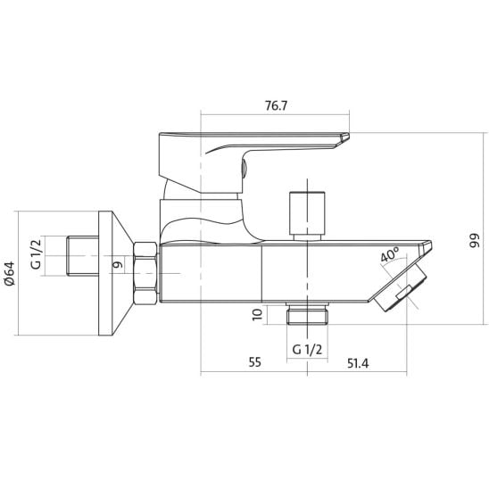 Cersanit Vero vanová baterie na stěnu chrom S951-004