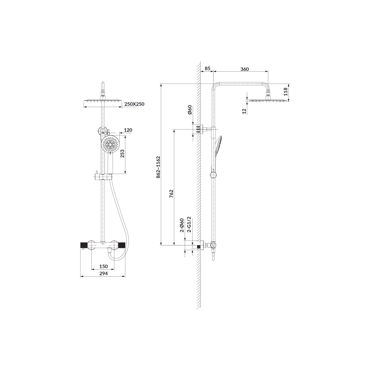 Cersanit Zen sprchová sada na stěnu s termostatem s dešťovou sprchou černá-grafitová S951-784