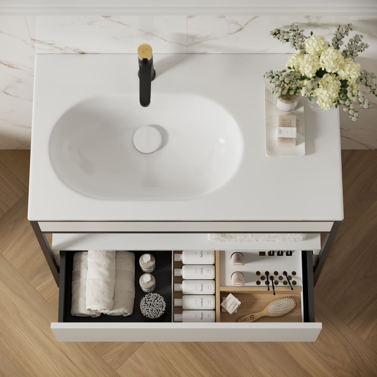 Umyvadlo ZEN 100 BY CERSANIT s keramickou deskou - to je dosažení optimální kombinace použitelnosti keramické mísy a funkčnosti keramické desky. Keramické umyvadlo vybavené otvorem pro baterii a přepadem, kompatibilní se skříňkami z kolekce Larga.