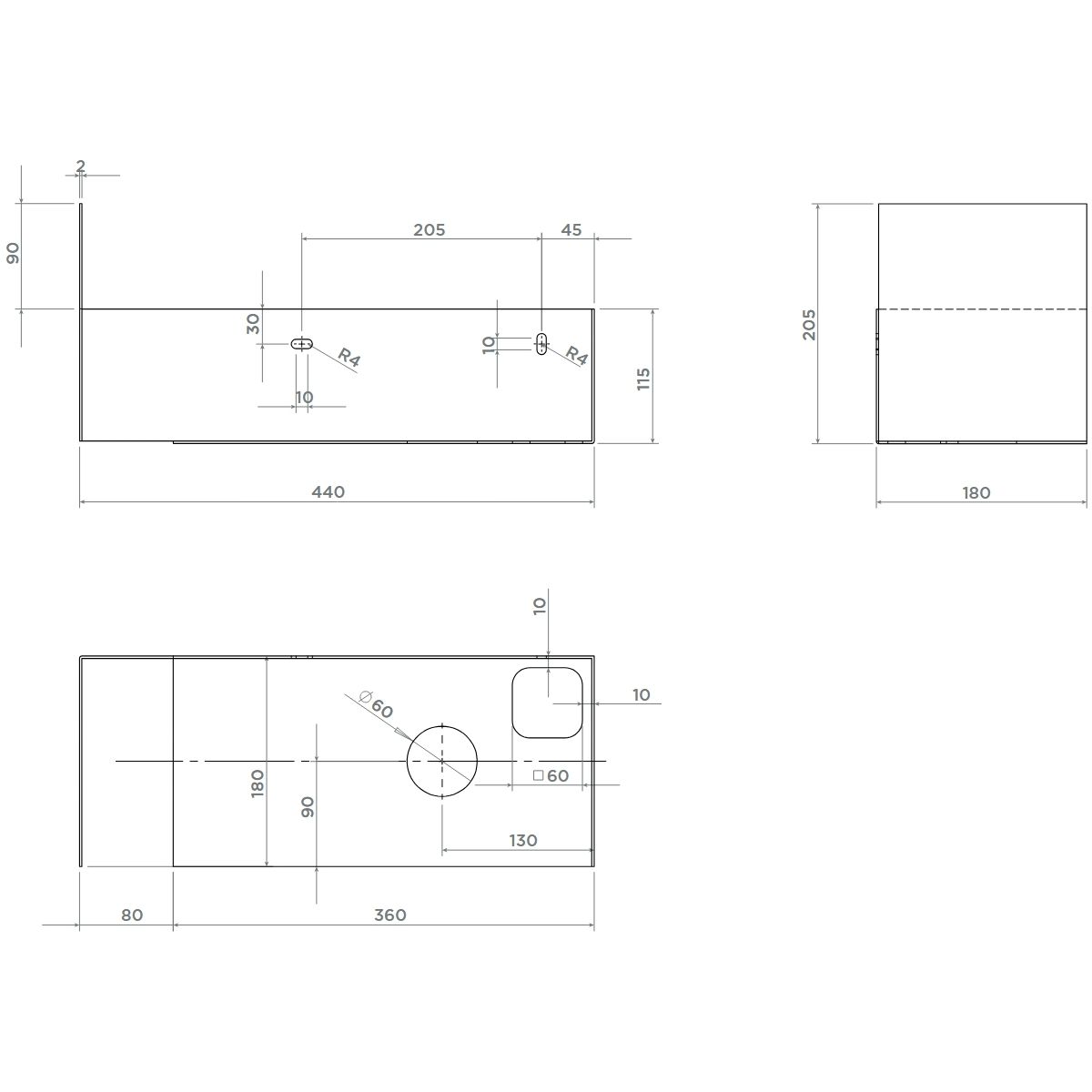 Clou Flush konzole 44x18x20.5 cm pod umyvadlo závěsná černá CL/07.36.030.21