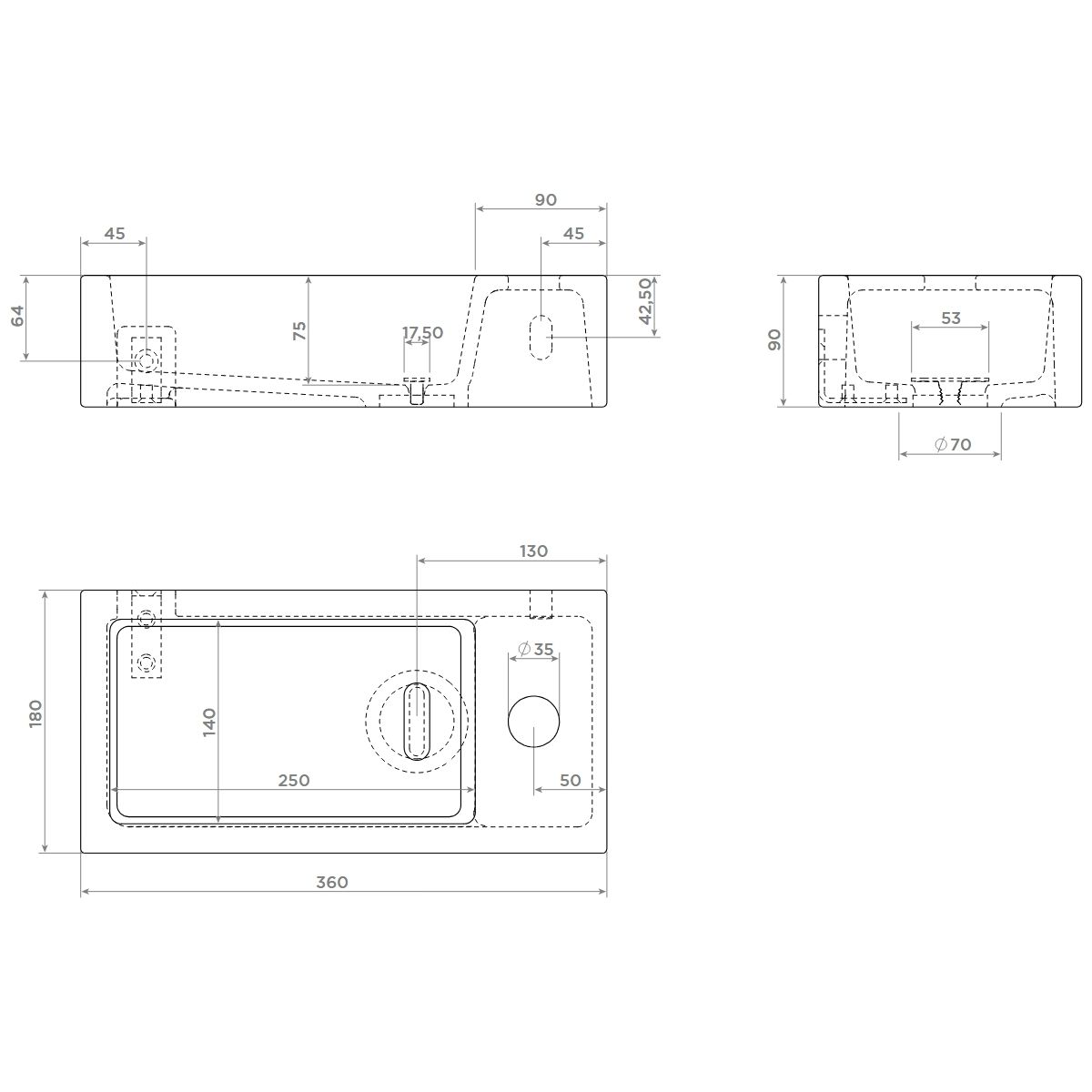 Clou Flush umyvadlo 36x18 cm obdélníkový klasický-na pult bílá CL/03.02030