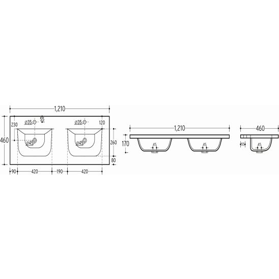 Comad Sky umyvadlo 121x46 cm obdélníkový zápustný-dvojitý bílá SKY120D-8099