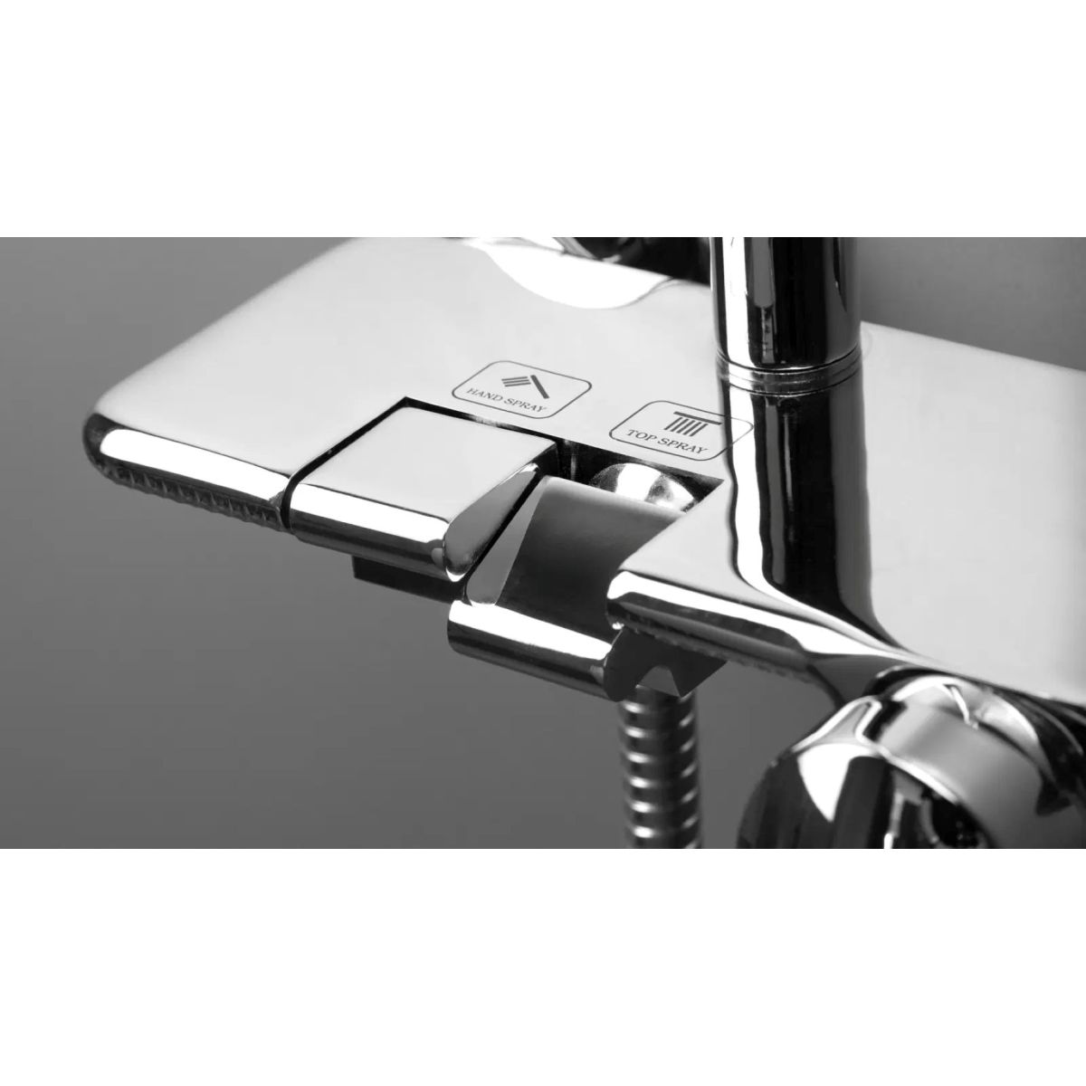 Dešťová sprcha s poličkou na kosmetiku kombinuje jednoduchý design s praktickými prvky. Ocelová tyč zajišťuje odolnost a flexibilní PVC hadice zaručuje pohodlné používání. Horní sprchová hlavice a ruční sprcha jsou vybaveny systémem Anti-Calc, který usnadňuje čištění a omezuje usazování vodního kamene. Polička na kosmetiku poskytuje pohodlné uložení nejpotřebnějších produktů, díky čemuž je sada vhodná do každé koupelny. Celá souprava má univerzální povrchovou úpravu v lesklém chromu.