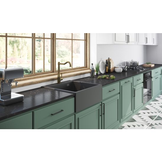 Dřez Eridan je vyroben z odolné žuly. Jeho výhodou je prostorná mísa, do které se vejdou i velké hrnce a plech na pečení. Dřez má zástěru, tj. přední část dřezu přesahující pracovní desku. Toto řešení umožňuje postavit se blíže k míse a zaujmout při mytí nádobí pohodlnější polohu, aniž byste si namáhali záda. Dosud byl farmářský dřez spojován s provensálským stylem, ale v moderních interiérech je stále oblíbenější.