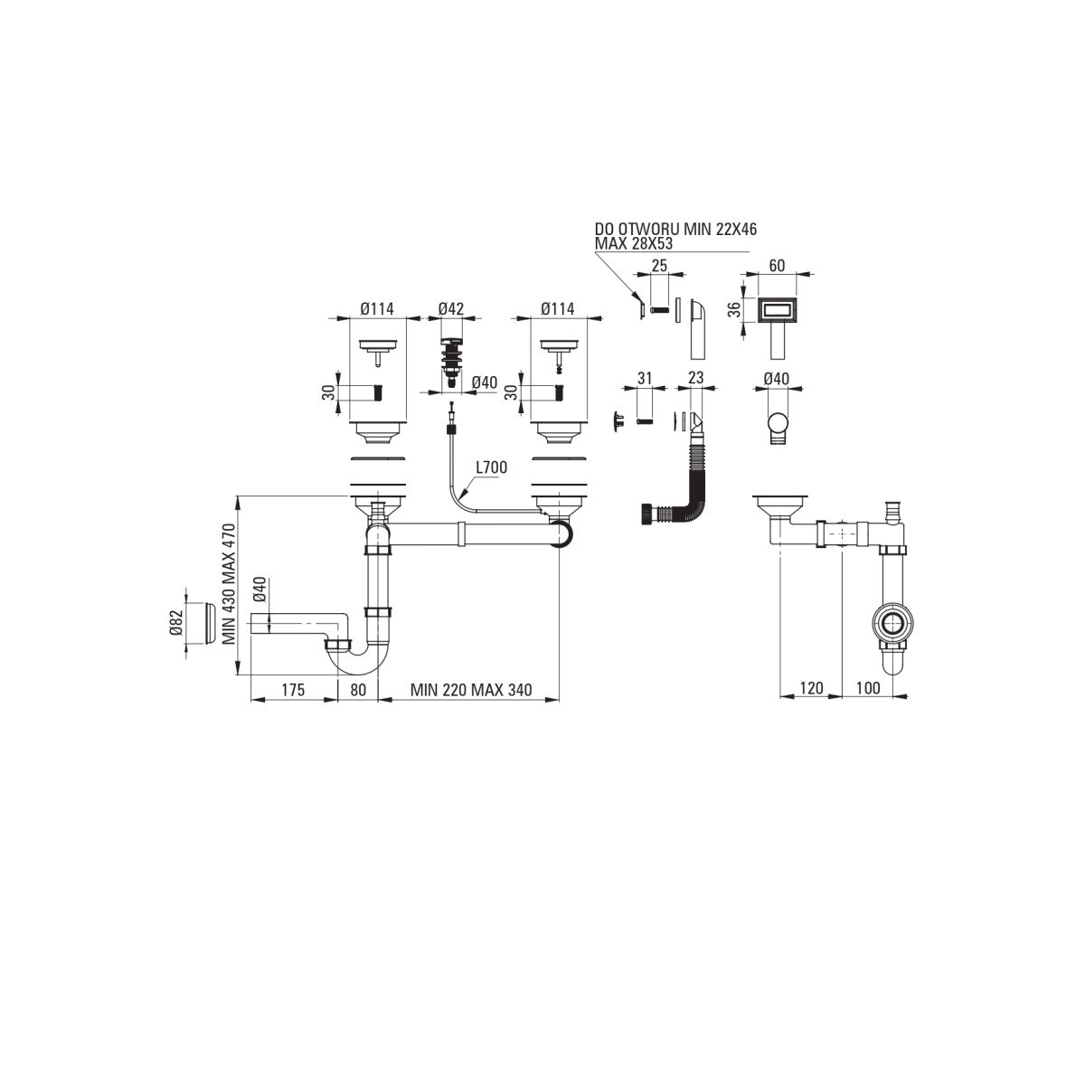 - prostorově úsporný sifon na odpad Space-saver pro snadné třídění odpadu, mj