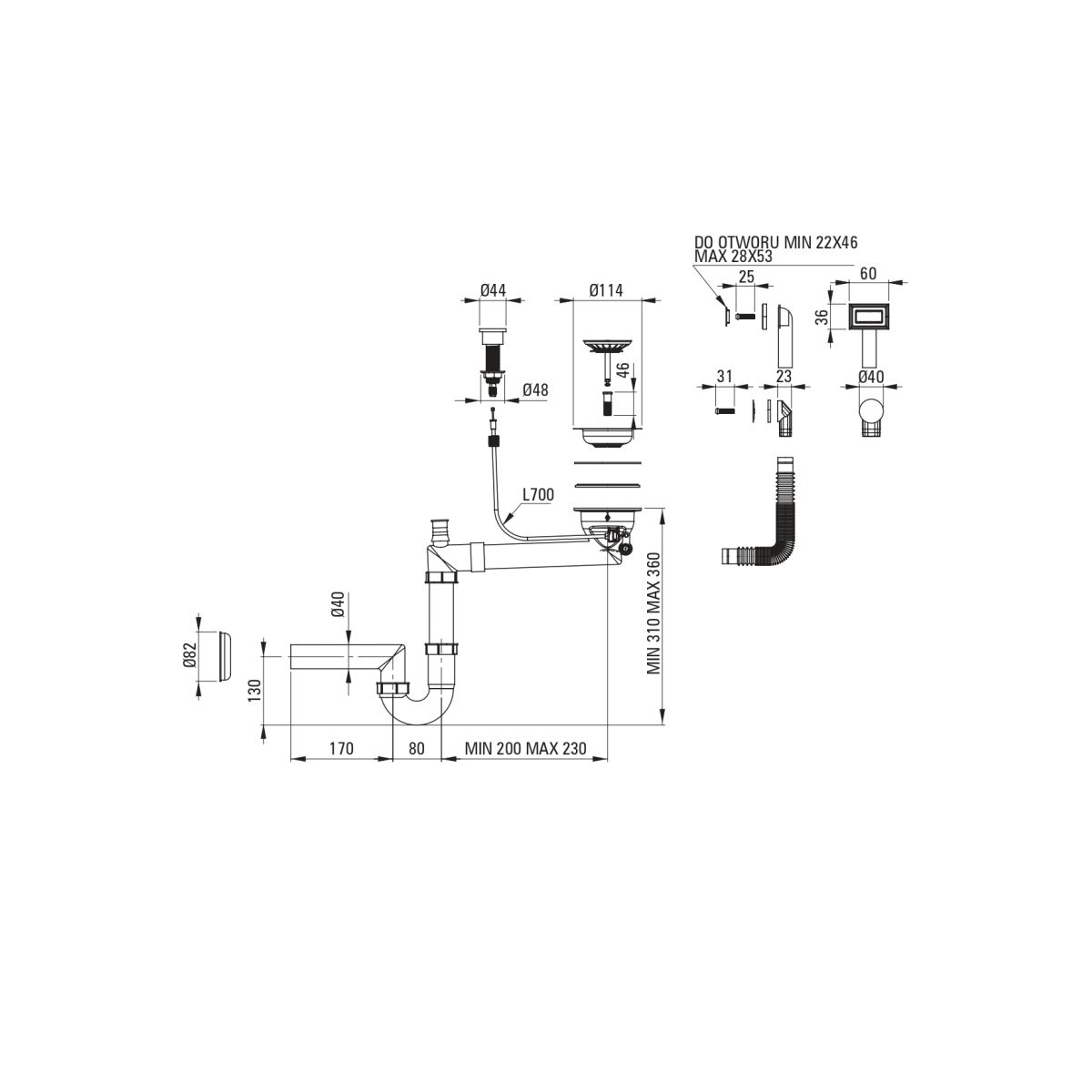 - Prostorově úsporný sifon pro snadné třídění odpadu, mj