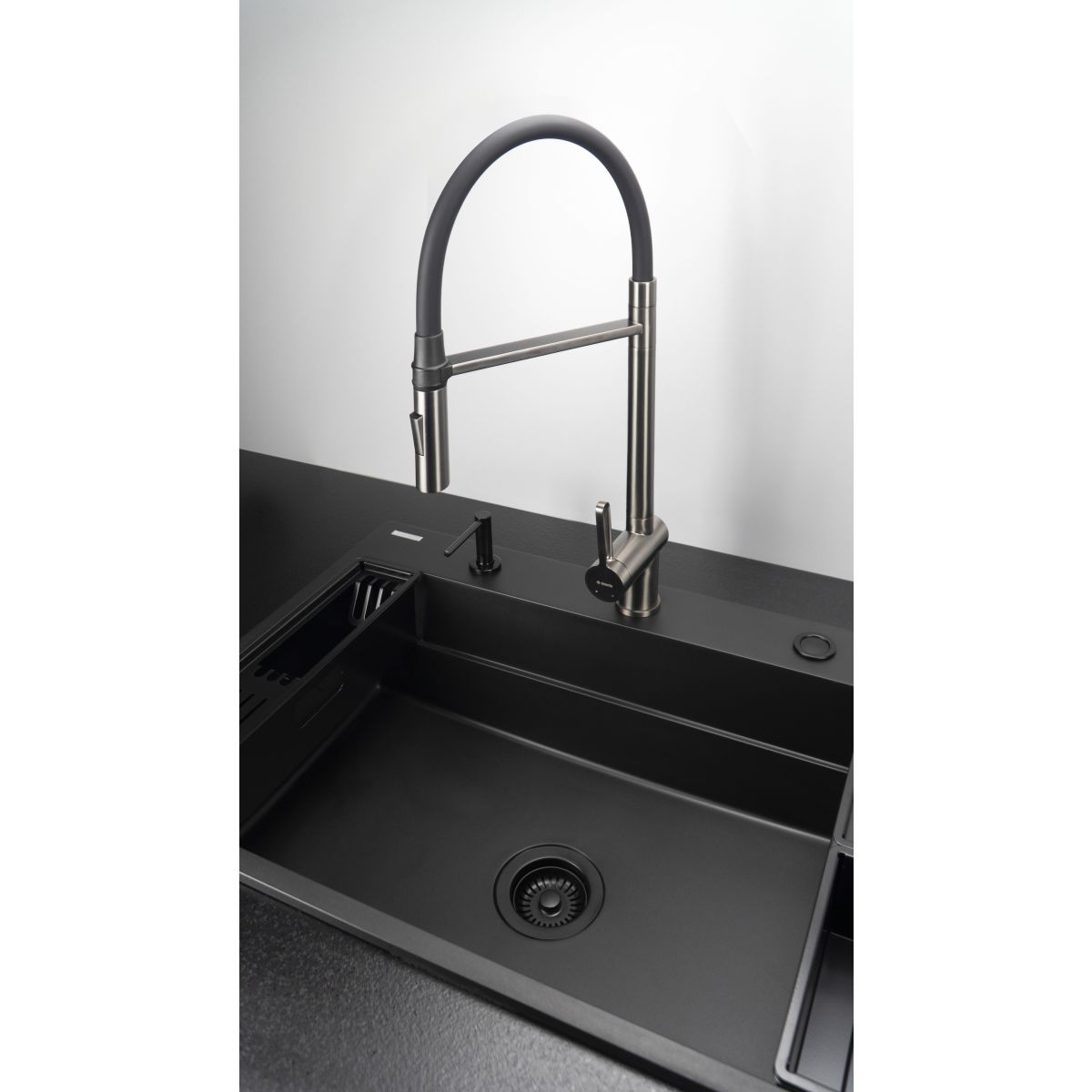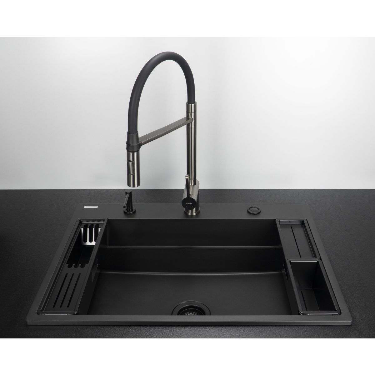 Granitový dřez Magnetic v barvě Nero o délce 760 mm je elegantní nabídkou pro ty, kteří oceňují inovativní řešení. Dřez se vyznačuje jedinečnými magnetickými vlastnostmi, které umožňují instalaci praktických doplňků bez dodatečného upevnění. Kovové koše se připevňují na boční poličku pomocí magnetu. Ty jsou ideální pro ukládání kuchyňského náčiní. Dřez je podomítkový a granit s antiseptickými a hydrofobními vlastnostmi zajišťuje hygienu a dlouhou životnost.