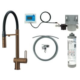 Kuchyňská baterie Magnetic s filtračním systémem vody je jedinečným řešením, které spojuje eleganci, funkčnost a péči o zdraví. Je vyrobena v barvě broušeného bronzu a vybavena flexibilním výtokem s magnetickým držákem. Baterie zajišťuje výjimečný komfort používání a zároveň dbá na estetiku, protože výtok vždy zůstává na svém místě. Díky zabudovanému filtračnímu systému se baterie stává zdrojem čisté a zdravé vody. Toto řešení nejenže eliminuje potřebu používat další džbány nebo láhve, ale také šetří životní prostředí tím, že omezuje spotřebu plastů. Přiložená filtrační sada účinně odstraňuje chlor, těžké kovy, písek a jiné nečistoty, čímž zlepšuje chuť a vůni vody. Praktický monitor signalizuje, kdy je třeba vyměnit filtrační vložku, což zaručuje stálou kvalitu vody každý den. Montáž celého systému je rychlá a jednoduchá a jeho každodenní používání je intuitivní a pohodlné.