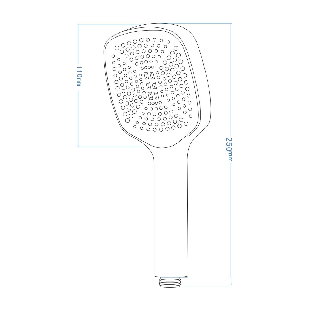 Sprchová souprava se skládá z rukojeti, ocelové hadice a tyče. Ruční sprcha je vybavena systémem Anti-Calc, který zabraňuje usazování vodního kamene, a dešťovým proudem pro příjemný a uvolňující zážitek ze sprchování. Nastavitelná tyč umožňuje snadnou montáž do stávajících montážních otvorů a rukojeť s nastavitelným úhlem umožňuje pohodlné umístění rukojeti podle individuálních preferencí. Celé zařízení je vyvedeno v elegantní matné černé barvě, která dokonale ladí s moderním koupelnovým interiérem.