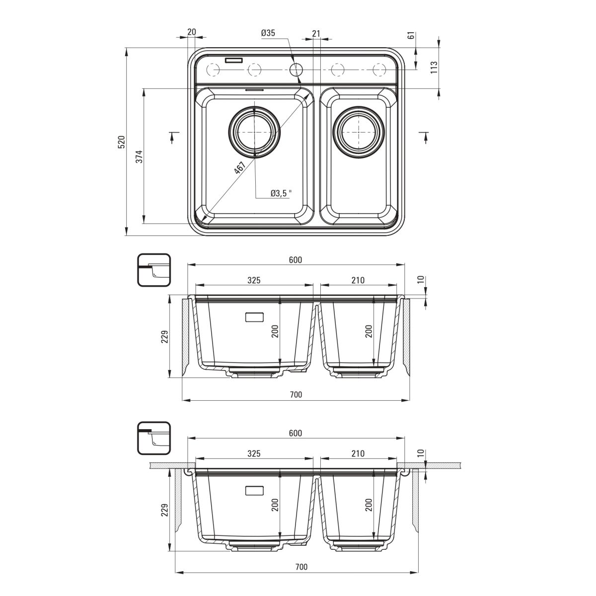 - Prostorově úsporný sifon mimo jiné pro snadné třídění odpadu