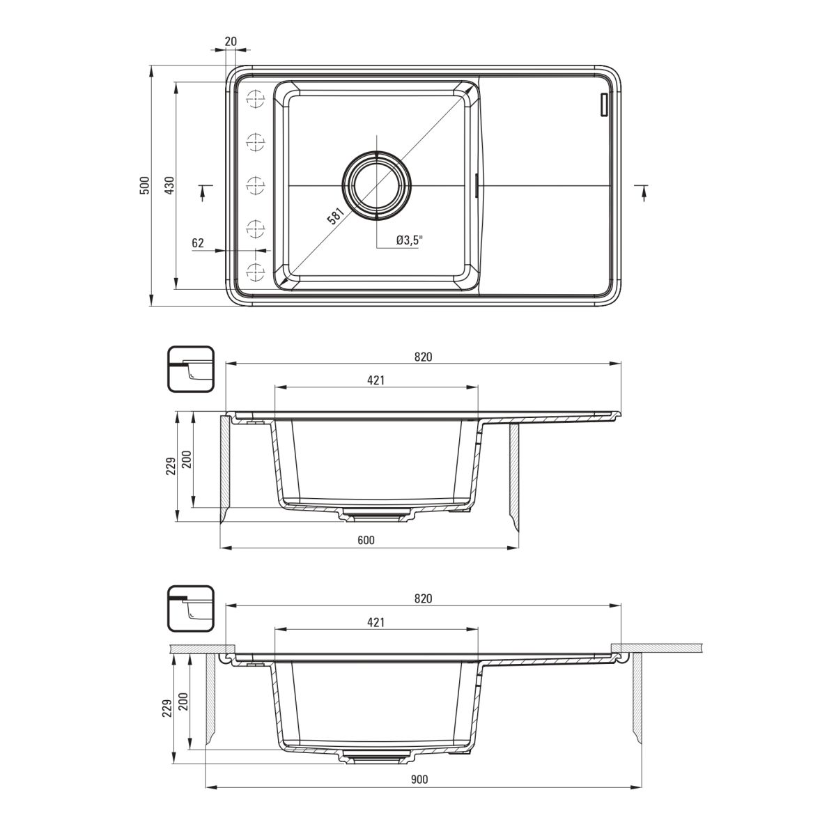 - výřez pro desku (zapuštěný) - šířka [mm]: 800 mm: 480