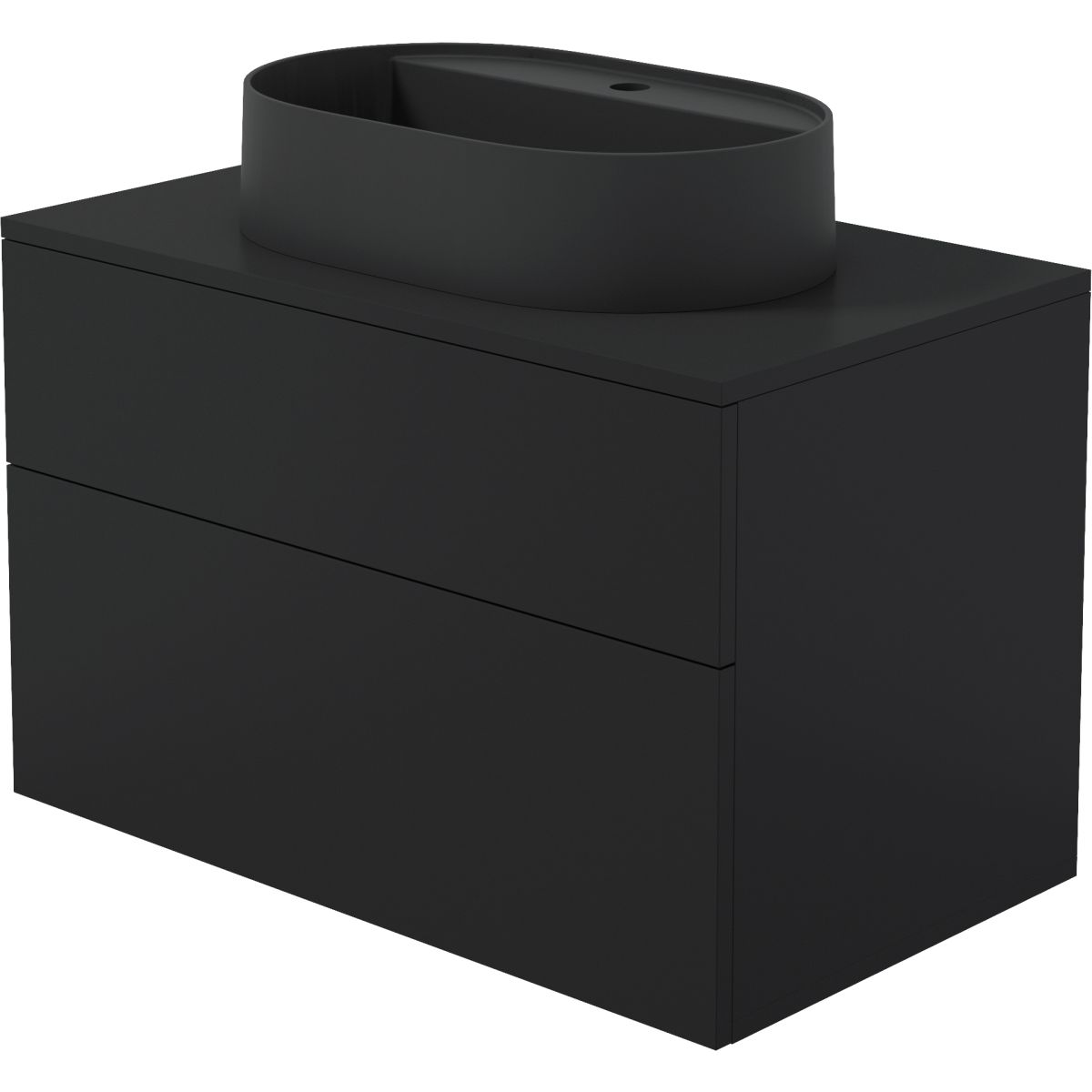 Koupelnová sestava kombinuje oválné granitové umyvadlo Silia v sytě černé barvě a skříňku Prizma s matným černým povrchem, čímž vytváří soudržnou a moderní kompozici. Tato kombinace barev dodává prostoru elegantní, minimalistický charakter, který se skvěle hodí jak do větších, tak i menších koupelen. Umyvadlo zaujme hladkým povrchem bez přepadu, což usnadňuje jeho údržbu, a vestavěný ostrov umožňuje pohodlnou montáž baterie. Skříňka v matné černé barvě harmonicky ladí s granitovým umyvadlem a podtrhuje moderní styl soupravy. Dvě prostorné zásuvky s plným výsuvem a tichým dovíráním zajišťují pohodlí při každodenním používání a systém push to open podtrhuje inovativní charakter nábytku. Deska s otvorem pro sifon je perfektně přizpůsobena umyvadlu a vytváří jednotný a elegantní celek. Sada je dodávána kompletně smontovaná a připravená k instalaci. Vyrobeno v Polsku s nejvyšší péčí, je ideální volbou pro ty, kteří ocení kvalitu, funkčnost a moderní eleganci.