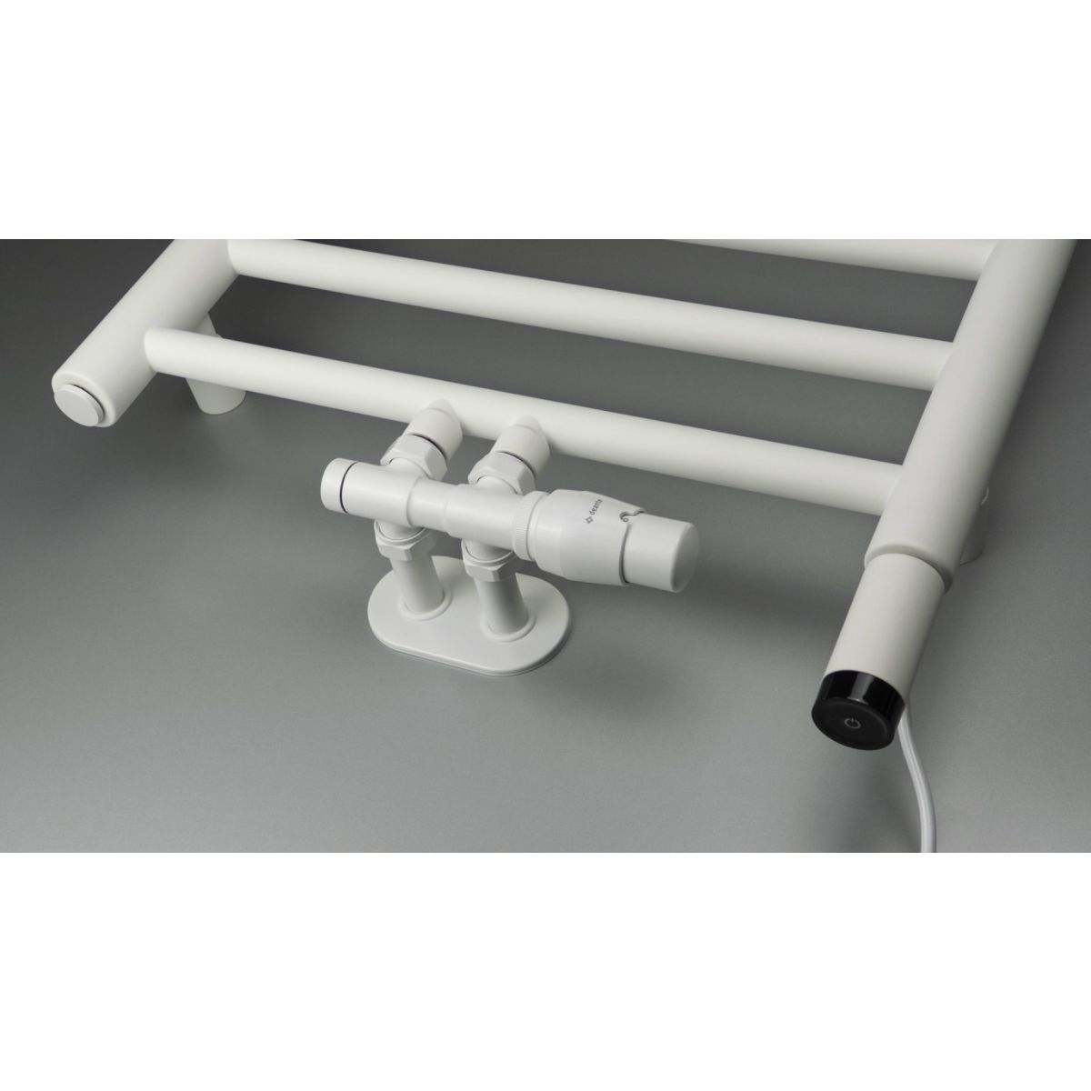 Moderní koupelnový radiátor o rozměrech 1210x500 se vyznačuje oblými tvary a matně bílým povrchem. Má praktický háček na ručník nebo župan. Jedná se o hybridní model: vodní-elektrický, s možností dokoupení 400W topného tělesa pro dodatečné vytápění nebo sušení ručníků mimo topnou sezónu. K ohřívači je třeba dokoupit ventil. Volitelné topné těleso i potřebný ventil jsou k dispozici ve stejné barvě jako radiátor.