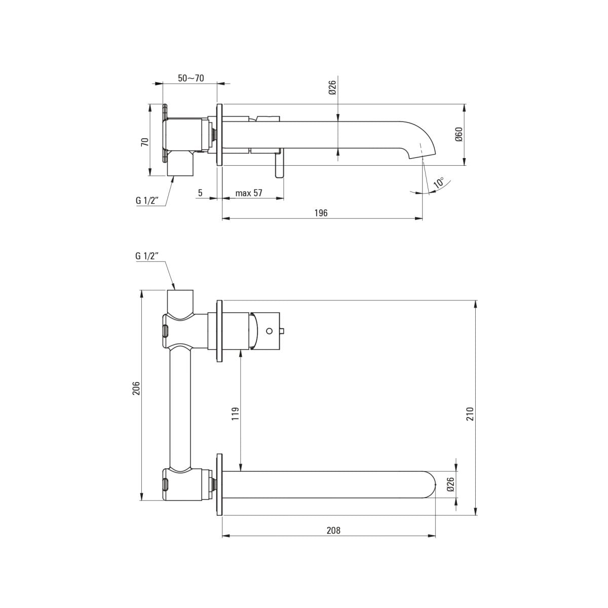 - rozsah výtoku baterie [mm]: 201