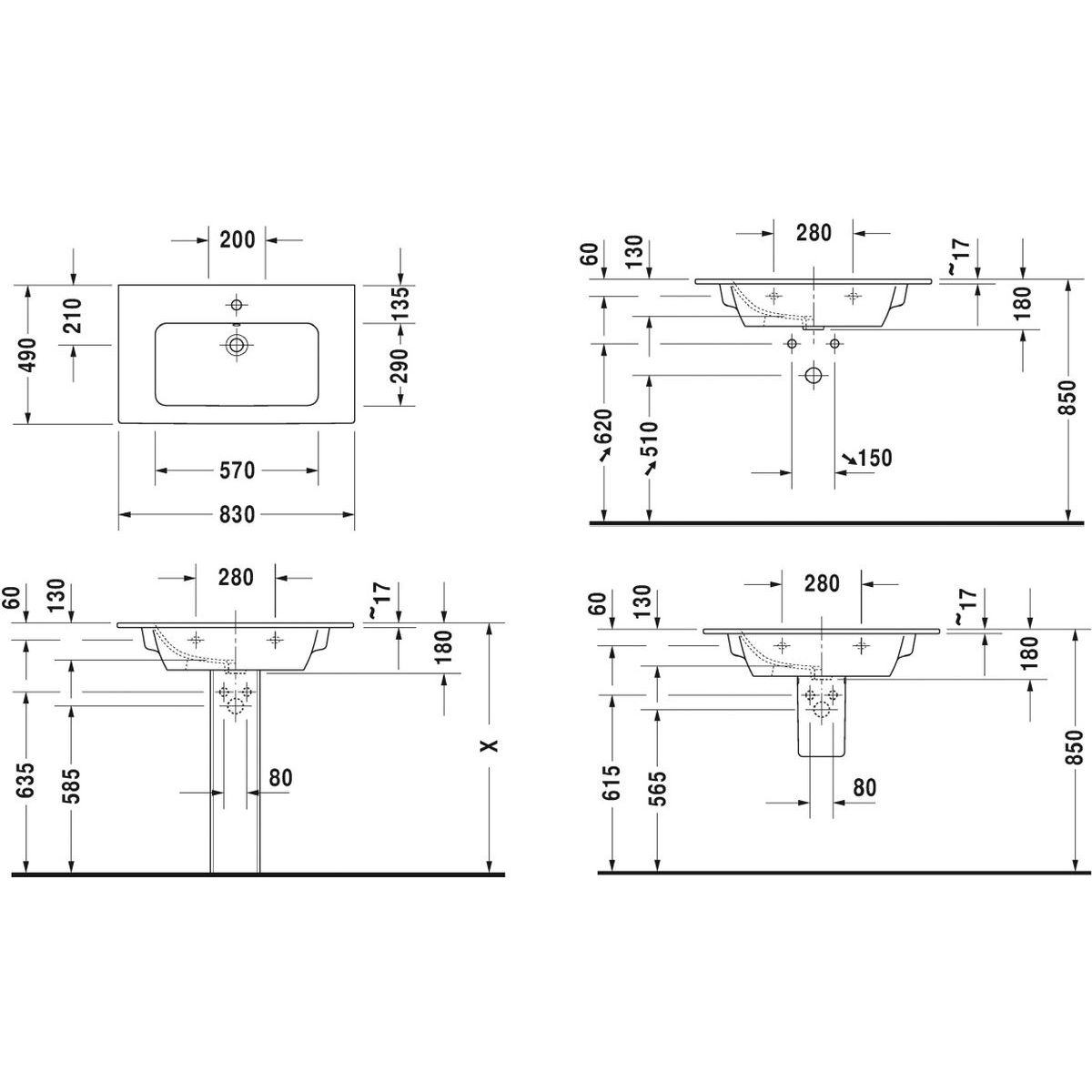 Duravit ME by Starck umyvadlo 83x49 cm obdélníkový klasický-nábytkový bílá 23368300001