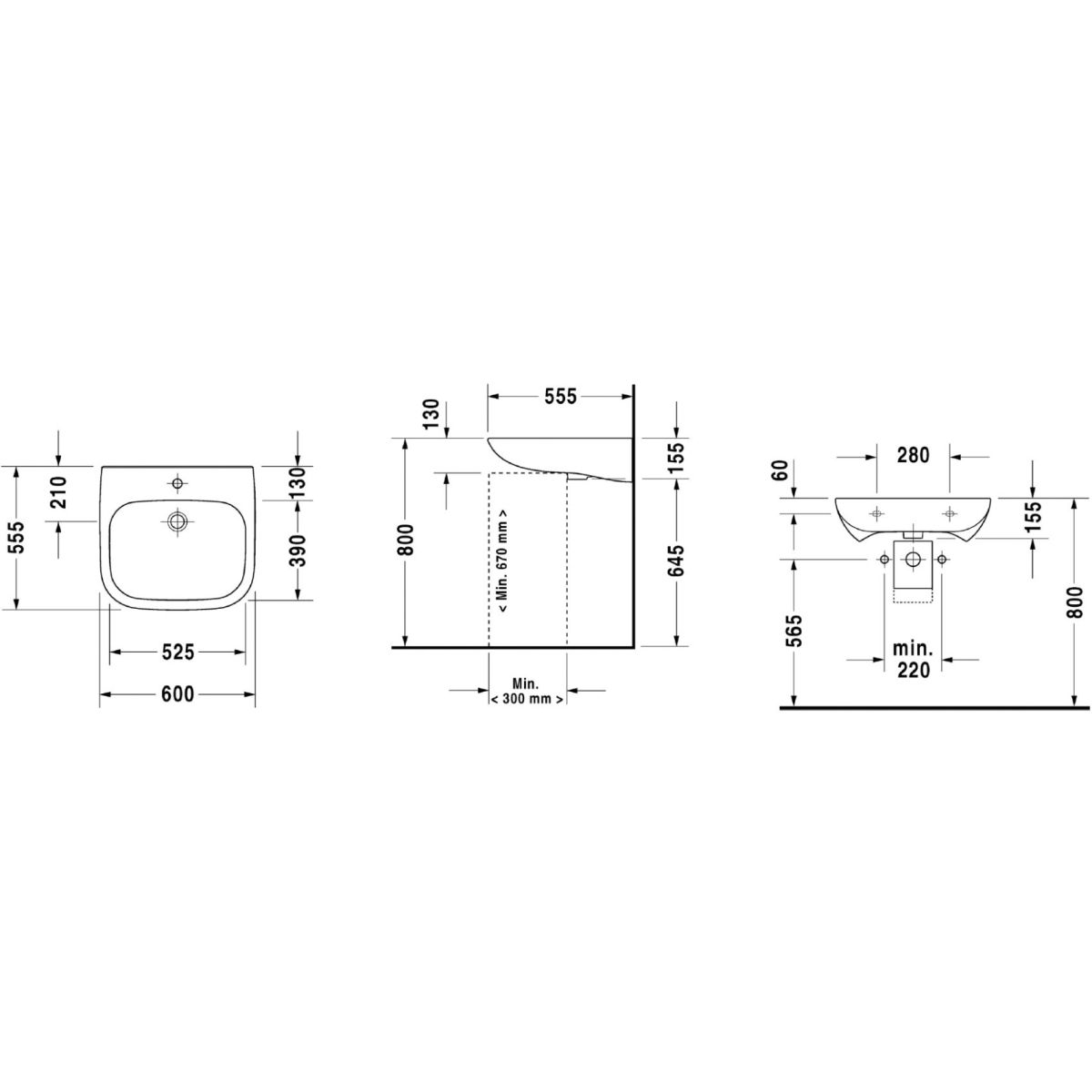 Duravit Med umyvadlo 60x55.5 cm obdélníkový klasický pro osoby se zdravotním postižením bílá 23136000002
