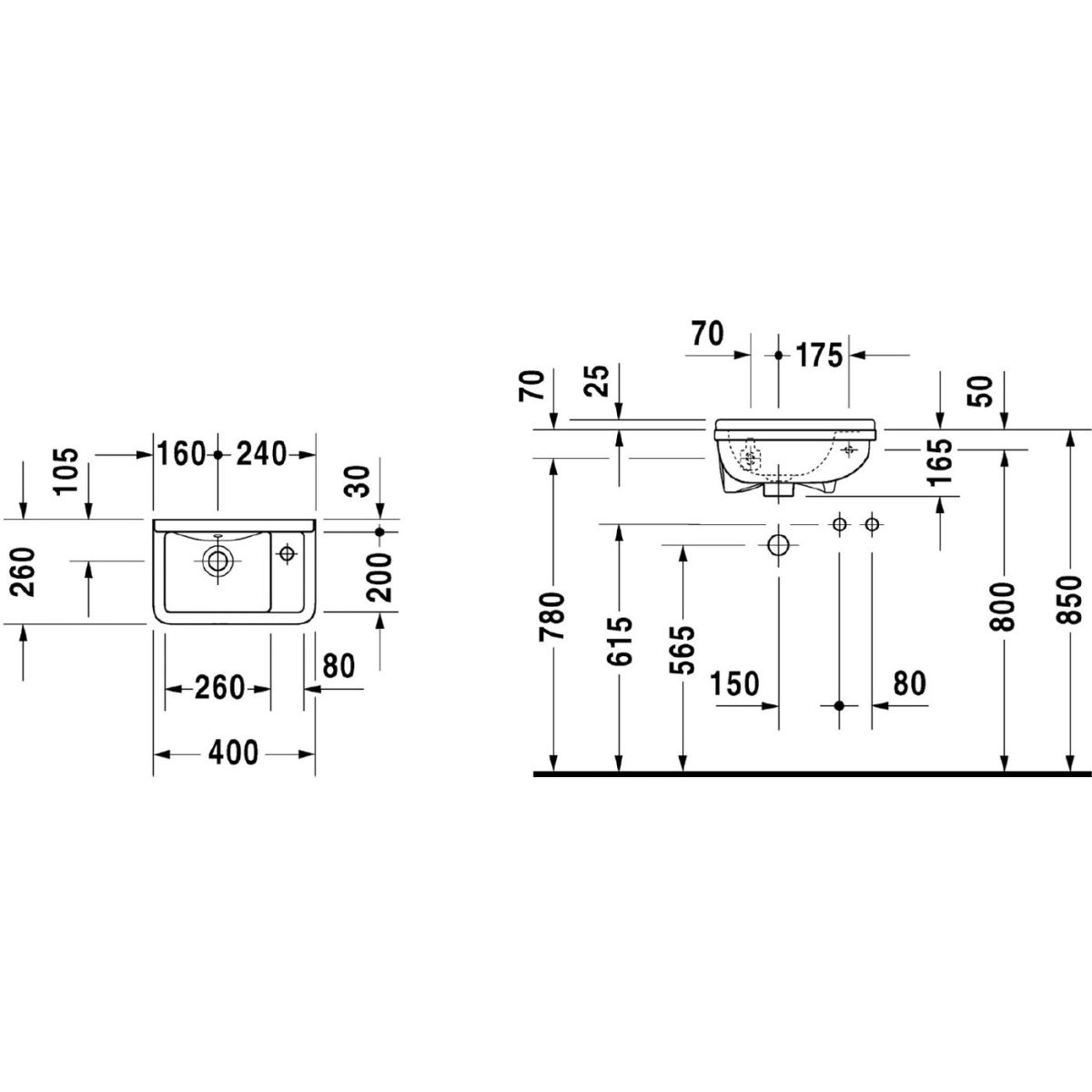 Duravit Starck 3 umyvadlo 40x26 cm obdélníkový klasický bílá 0751400000