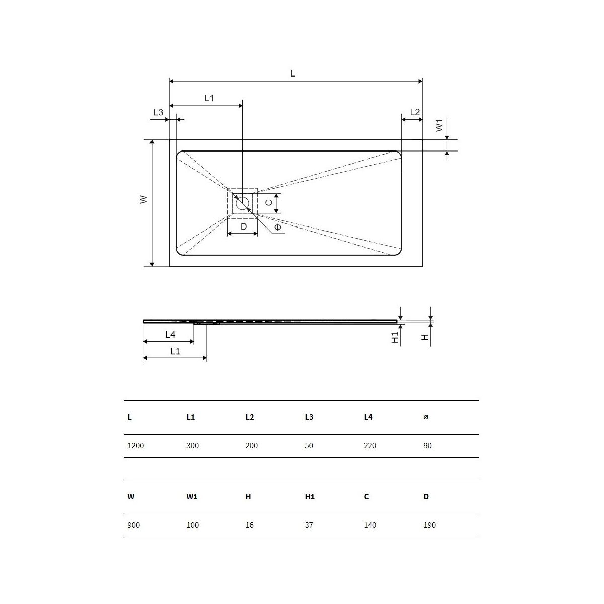 Excellent Arda obdélníková sprchová vanička 120x90 cm betonová BREX.1503.120.090.CON