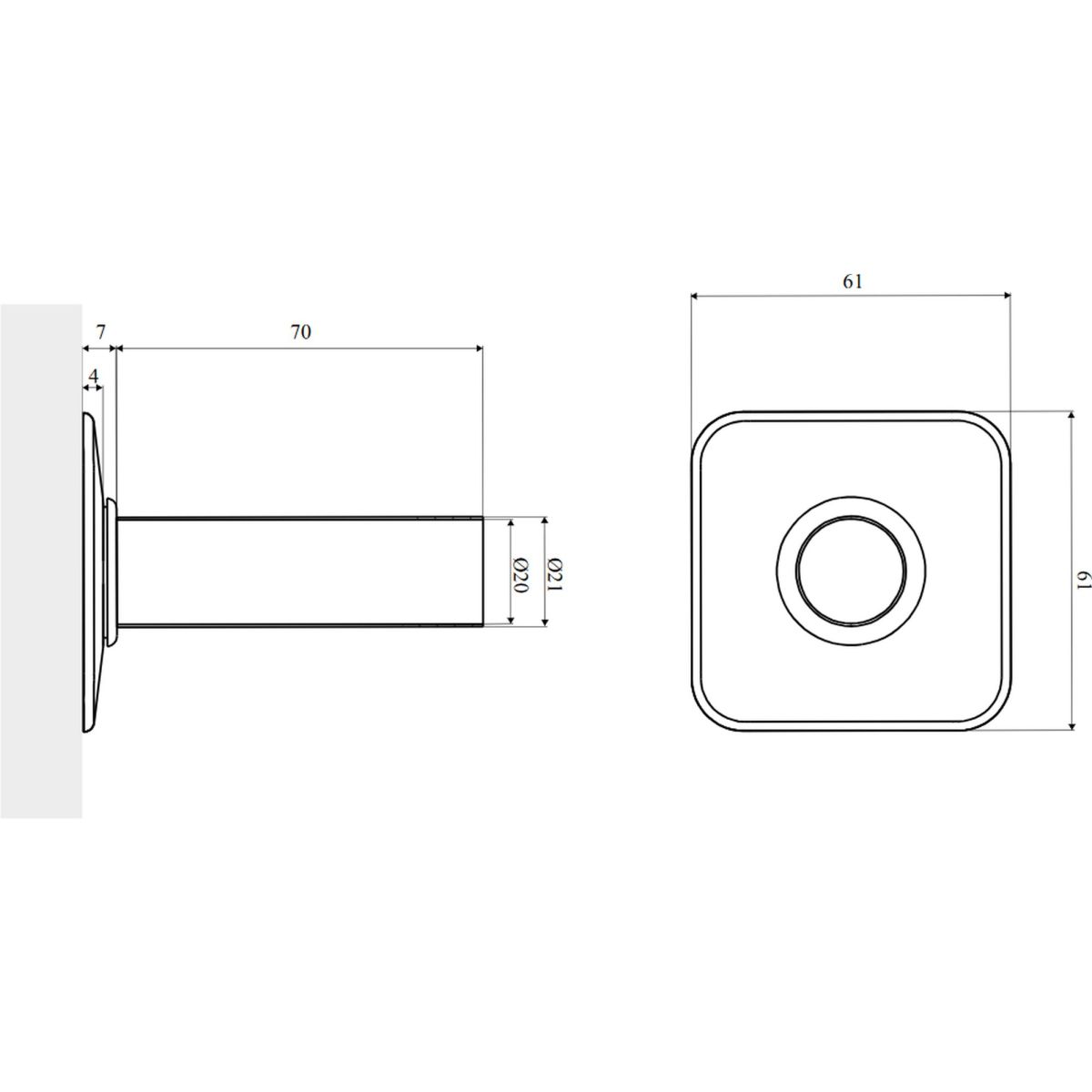 - 2 x jednoduchá čtvercová rozeta (otvory ¾” = Ø 25 mm)