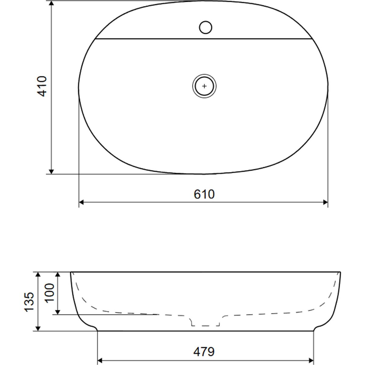 Umyvadlo Jima na desku 61x41 cm oválné s otvorem pro baterii, bílý lesk CEAC.2002.615.WH