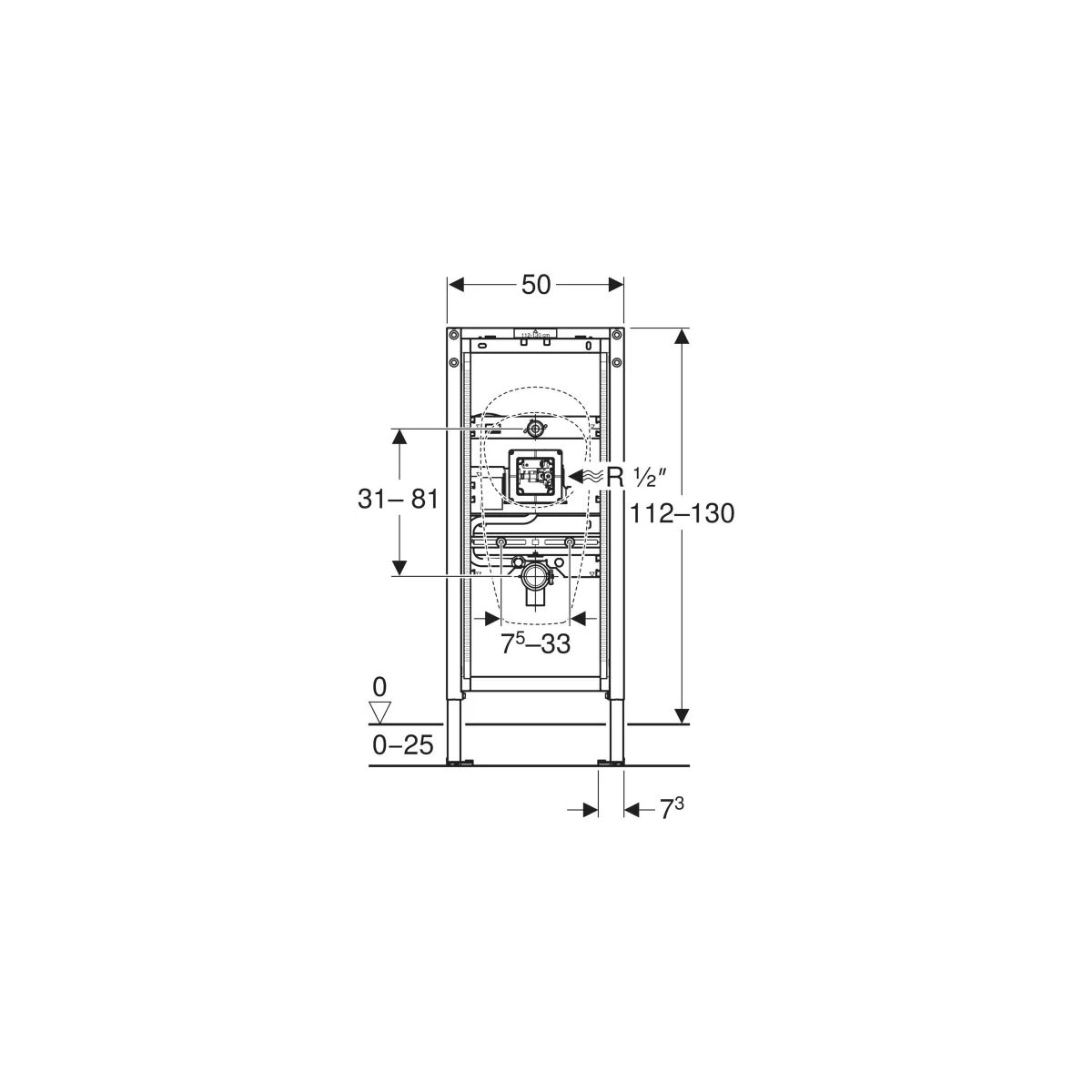 Rám lze instalovat do konstrukčních stěn z kovu a dřeva, stejně jako do stěnových systémů Geberit Duofix. Hodí se jak do stěn s částečnou výškou, tak do stěn sahajících až ke stropu. Otočné protiskluzové nohy jsou kompatibilní s profily UW 50 a UW 75 a montáž do systémové lišty se provádí bez použití nářadí. Prvek lze přizpůsobit úrovni podlahy v rozmezí 0–25 cm, což usnadňuje integraci do různých uspořádání místností.