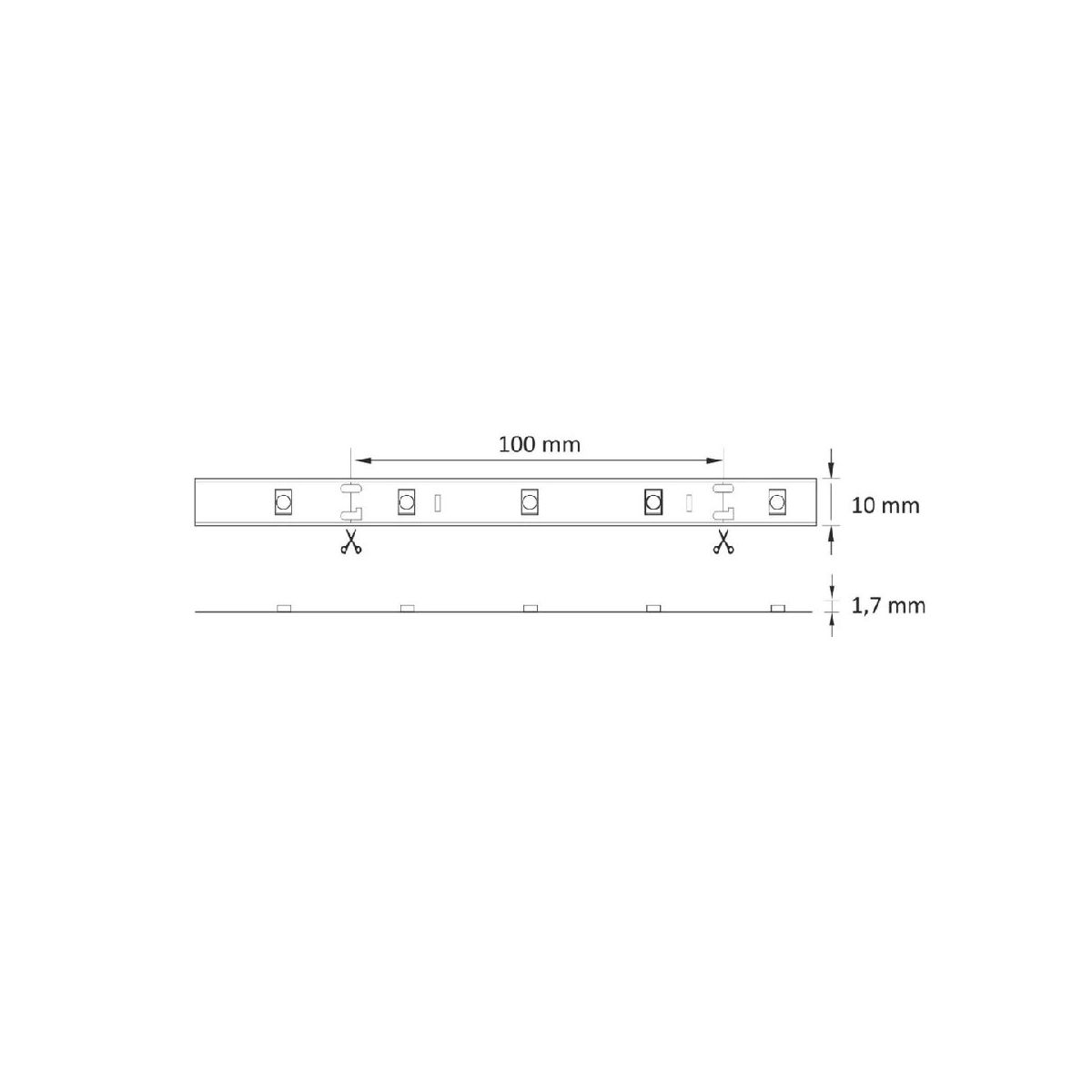 - lze řezat každých 10 cm = 3 x LED - místo řezu vyznačeno na LED pásku