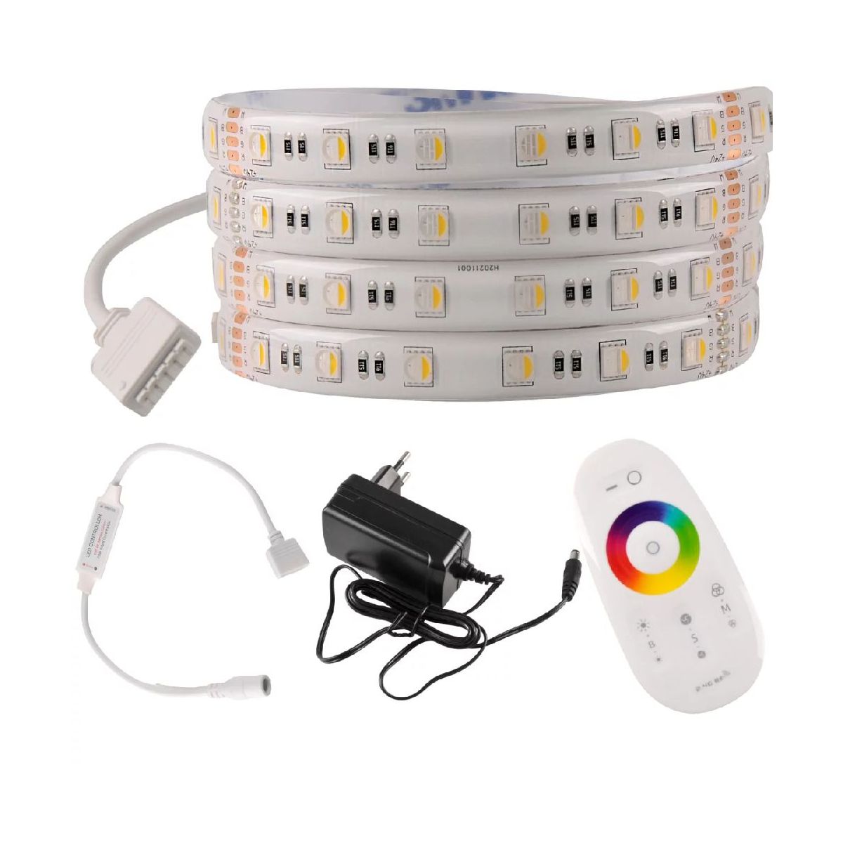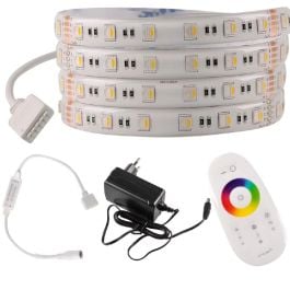 - sada obsahuje RGBW LED pásek IP65 5 m, ovladač, RF dálkové ovládání (baterie nejsou součástí dodávky, 2 x AAA), napájecí zdroj pro LED pásky 24V DC 1A 24W