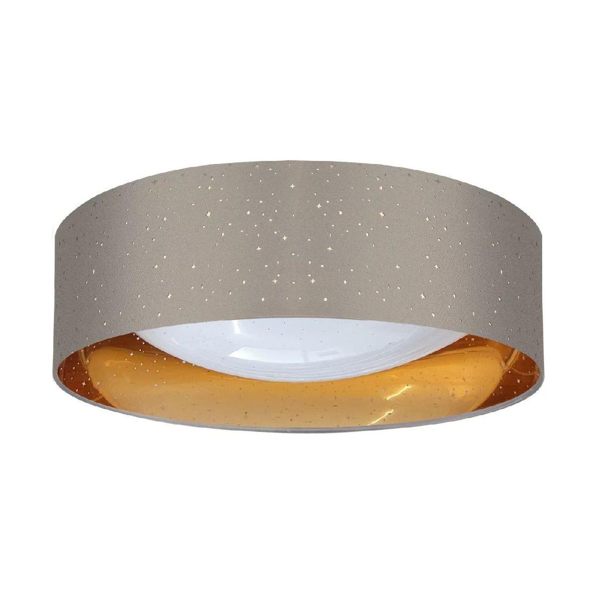 Goldlux Tuluza je stropní svítidlo kulatého tvaru s jemným opalescením, o průměru 40 cm a výšce 12 cm. Jemně rozptyluje světlo a vytváří příjemnou atmosféru v místnosti. Zlatý odstín vnitřní strany stínidla mu dodává elegantní charakter.