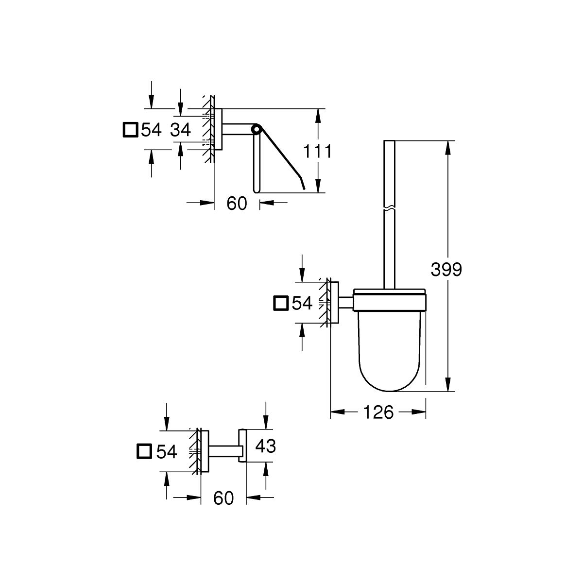 - možnost přišroubování (pomocí šroubů a hmoždinek) nebo přilepení (GROHE QuickGlue A1 41 127 000 prodáváno samostatně – potřebujete 3 ks)