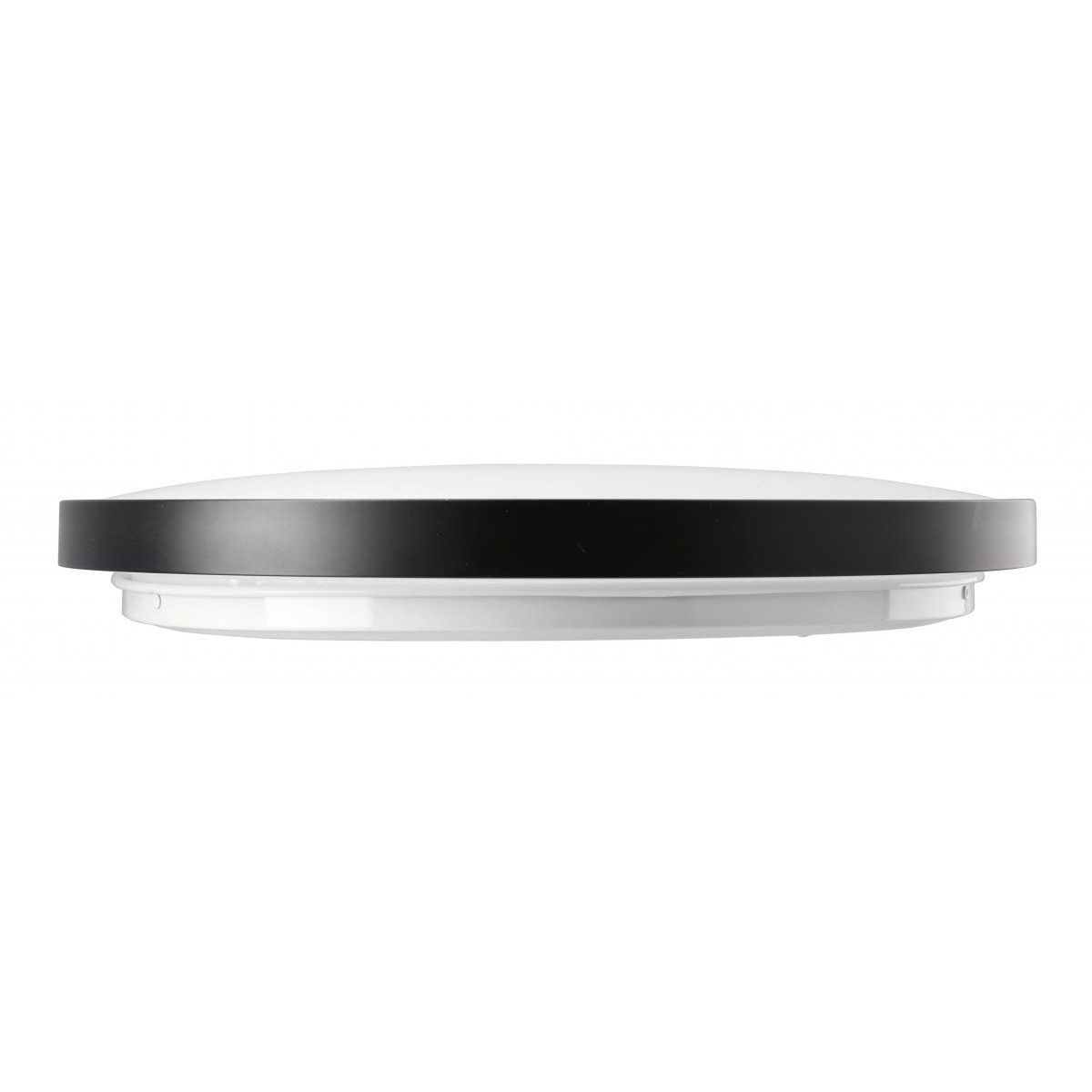Plafón GTV Atol v kombinaci bílé a černé barvy se vyznačuje jednoduchým kruhovým tvarem a výrazným charakterem. Jedná se o model, který je vysoký 6,5 cm a má průměr 39,5 cm. Skvěle se hodí do industriálních, skandinávských nebo minimalistických uspořádání a stane se stylovou ozdobou stropu.