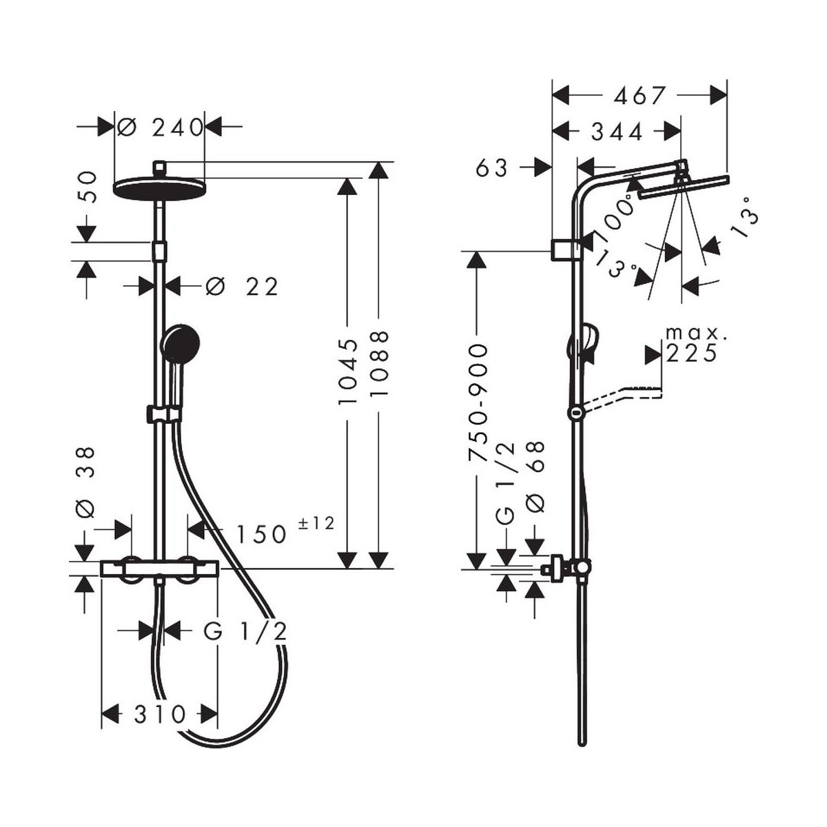 - Součástí dodávky: Vhodná pro všechny typy sprch, které jsou součástí dodávky: Sprchová souprava s termostatickou baterií | Přípojky typu S | Montážní prvky | Návod k instalaci