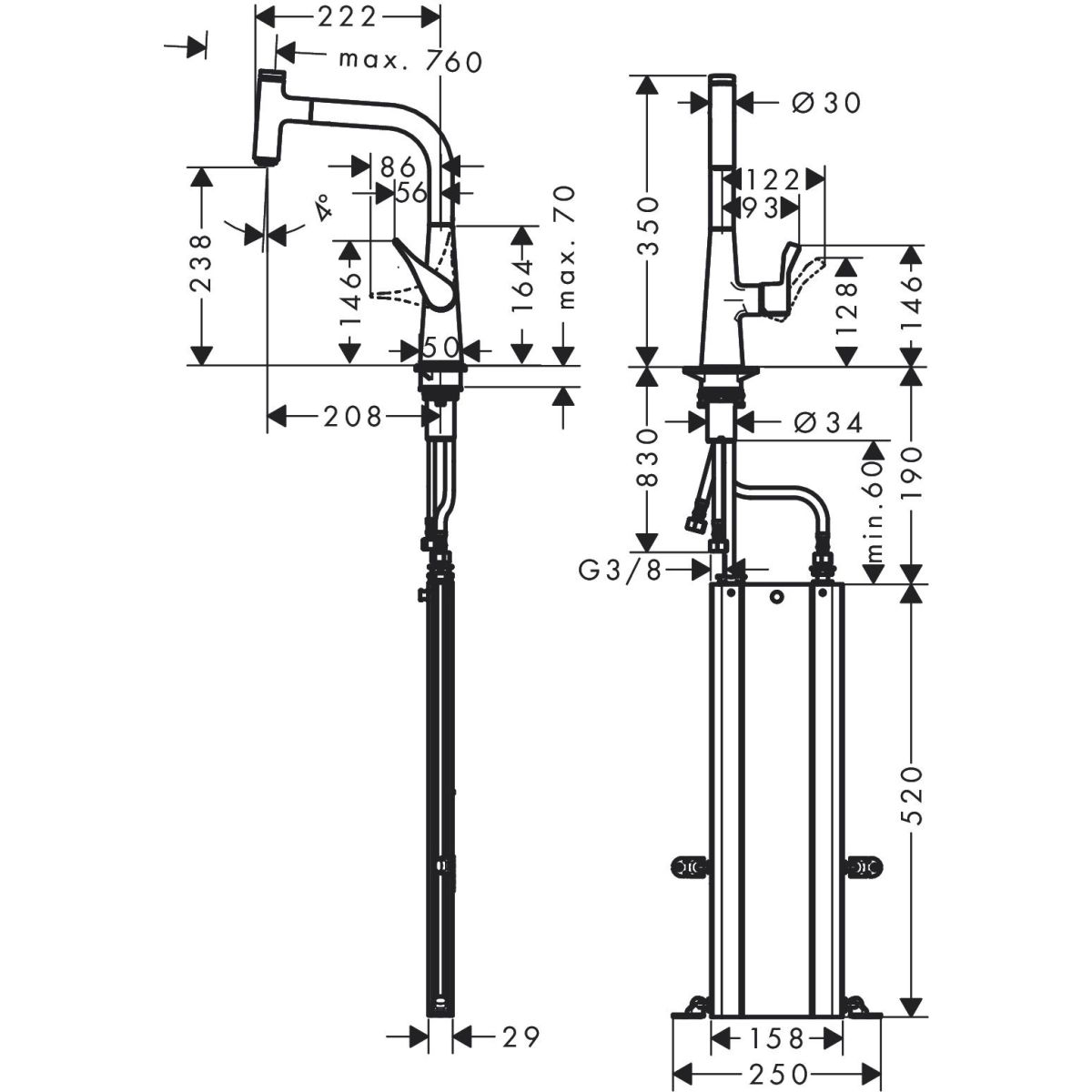 Hansgrohe Metris Select M71 kuchyňská baterie stojící ušlechtilá ocel 73802800