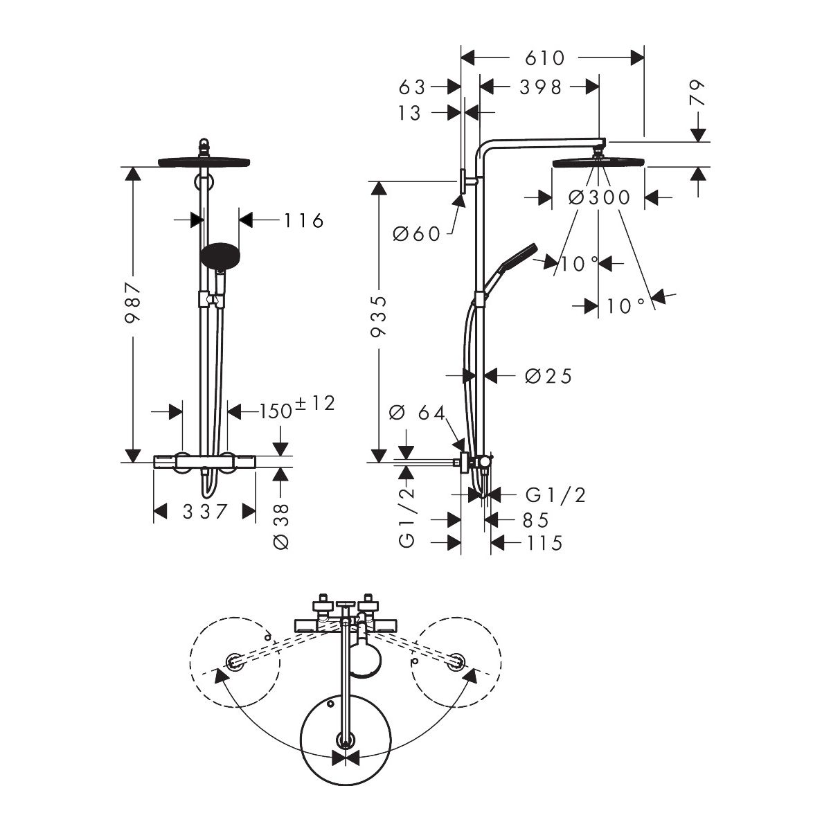 - velikost sprchové hlavice: 300 mm