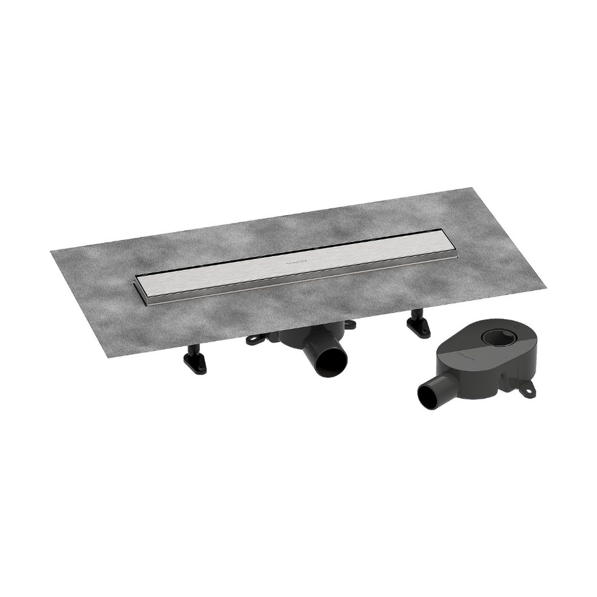 - Skládá se z: vnějšího prvku lineárního odtoku, sifonů, instalačních sad, předem namontované těsnicí membrány, nástroje pro demontáž roštu, sítka na vlasy