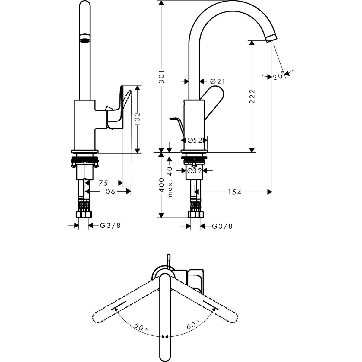 Hansgrohe Rebris S umyvadlová baterie stojící chrom 72536000